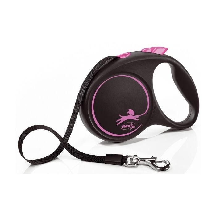 Flexi Black Design M Повідець-рулетка для собак вагою до 25 кг, стрічка, 5 м, рожева