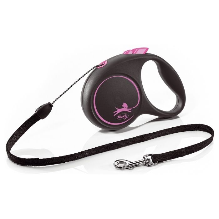 Flexi Black Design S Повідець-рулетка для собак вагою до 12 кг, трос, 5 м, рожева