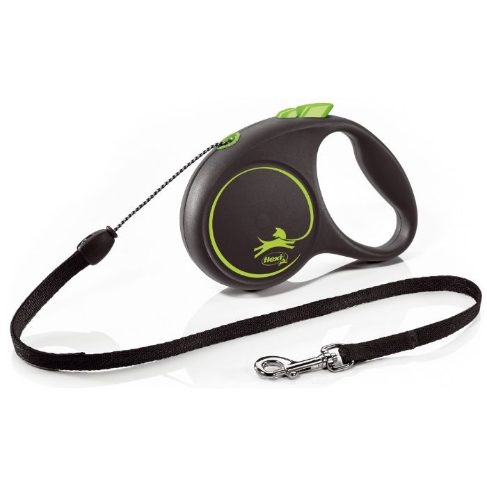 Flexi Black Design S Повідець-рулетка для собак вагою до 12 кг, трос, 5 м, зелена