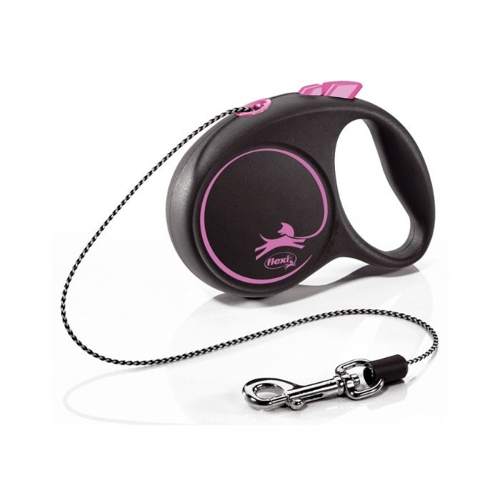 Flexi Black Design XS Повідець-рулетка для котів і собак вагою до 8 кг, трос, 3 м, рожева