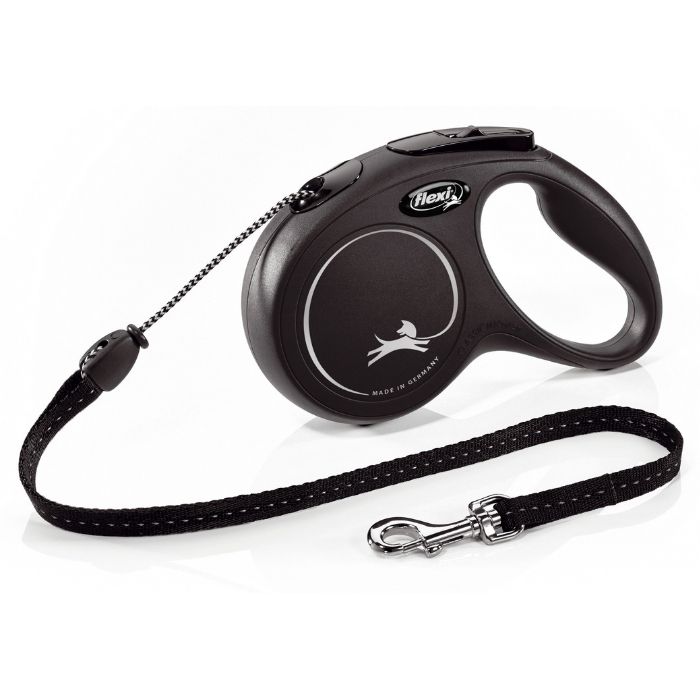 Flexi New Classic M Повідець-рулетка для собак до 20 кг, трос, 5 м, чорна