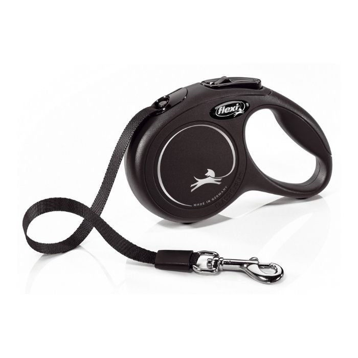 Flexi New Classic XS Повідець-рулетка для котів і собак до 12 кг, стрічка, 3 м, чорна