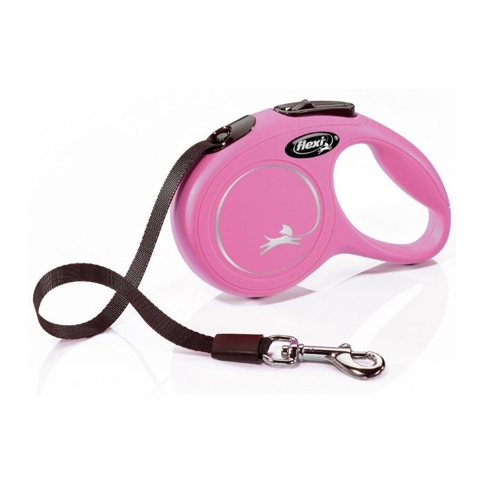 Flexi New Classic XS Повідець-рулетка для котів і собак до 12 кг, стрічка, 3 м, рожева