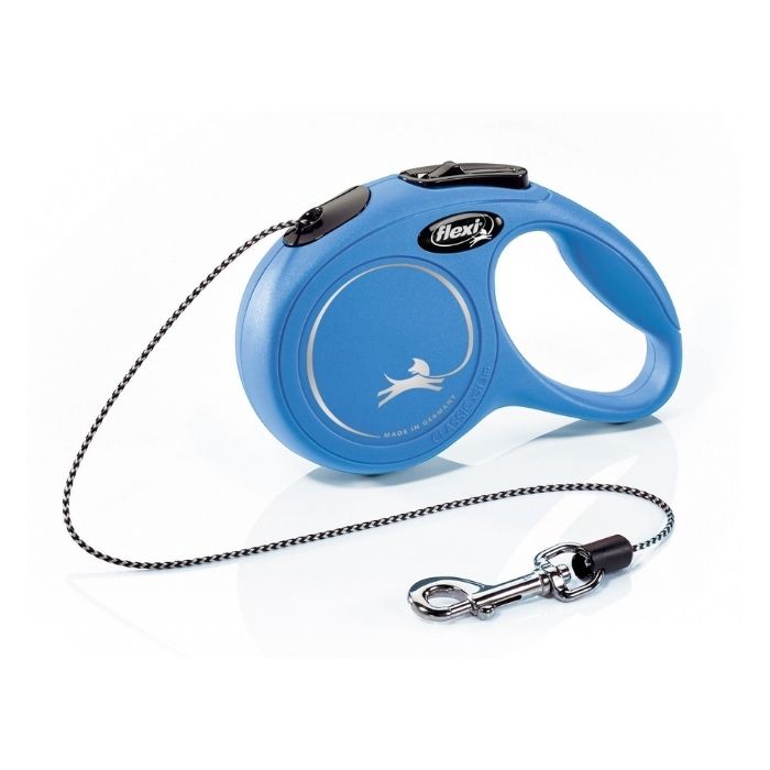 Flexi New Classic XS Повідець-рулетка для котів і собак до 8 кг, трос, 3 м, синя