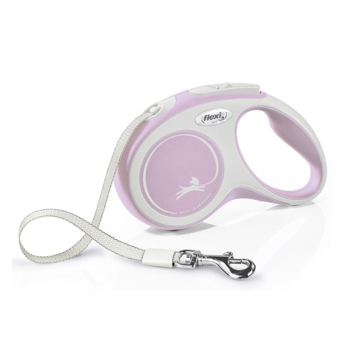 Повідці FLEXI New Comfort – це сучасна ергономічна форма, комфортна гальмівна система, тросовий та стрічковий варіант, удосконалений вихід стрічки, продумані аксесуари: Multi-Box для ласощів або одноразових пакетиків і система освітлення LED, яка ідеально підходить для вечірніх прогулянок.