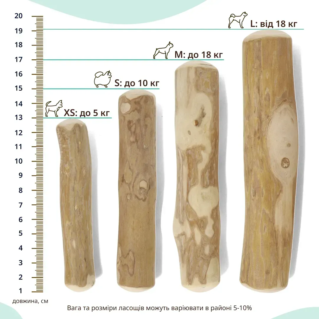 - Під час гризіння цієї палички собака також доглядає й за ротовою порожниною, адже це стимулює природний процес очищення зубів.