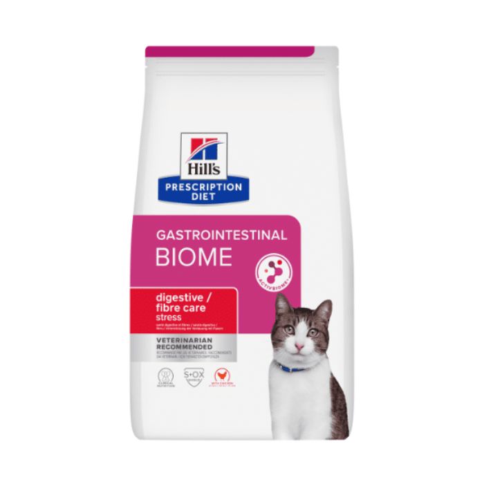 Сухий лікувальний корм для котів Hill's Prescription Diet Gastrointestinal Biome Stress з курятиною – це повнораціонне дієтичне харчування, спеціально розроблене дієтологами та ветеринарними лікарями для підтримки здоров’я шлунково-кишкового тракту й емоційної рівноваги у дорослих котів.