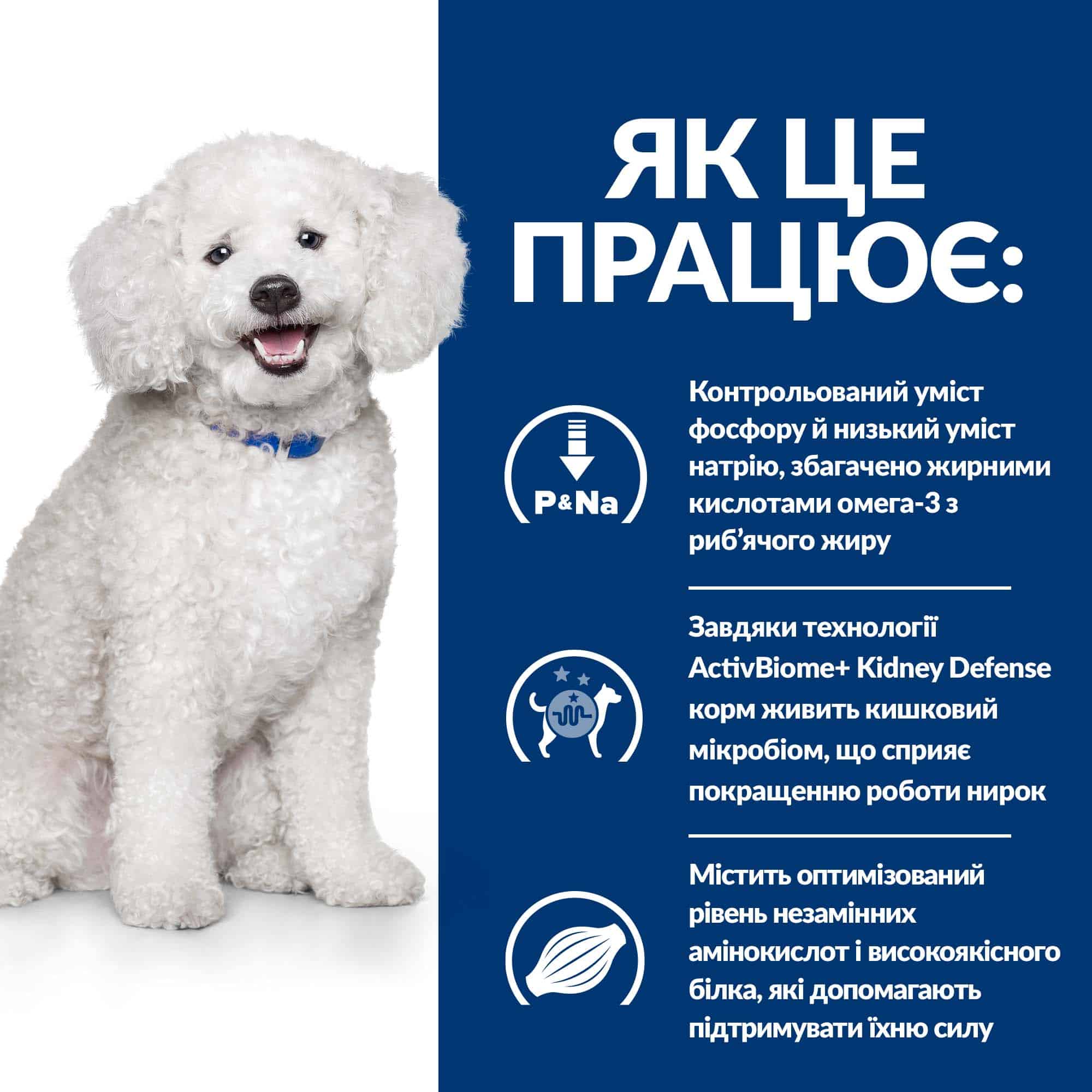 Раціон збагачений технологією ActivBiome+ Kidney Defense – запатентованою сумішшю пребіотиків із доведеною здатністю живити кишковий мікробіом і сприяти підтримці функції нирок. Сучасні методи діагностики дозволяють виявити хронічну хворобу нирок у собак на ранніх етапах, що дає змогу своєчасно впливати на перебіг захворювання. ХХН є незворотним станом, однак ранній початок дієтичної підтримки допомагає уповільнити її прогресування.