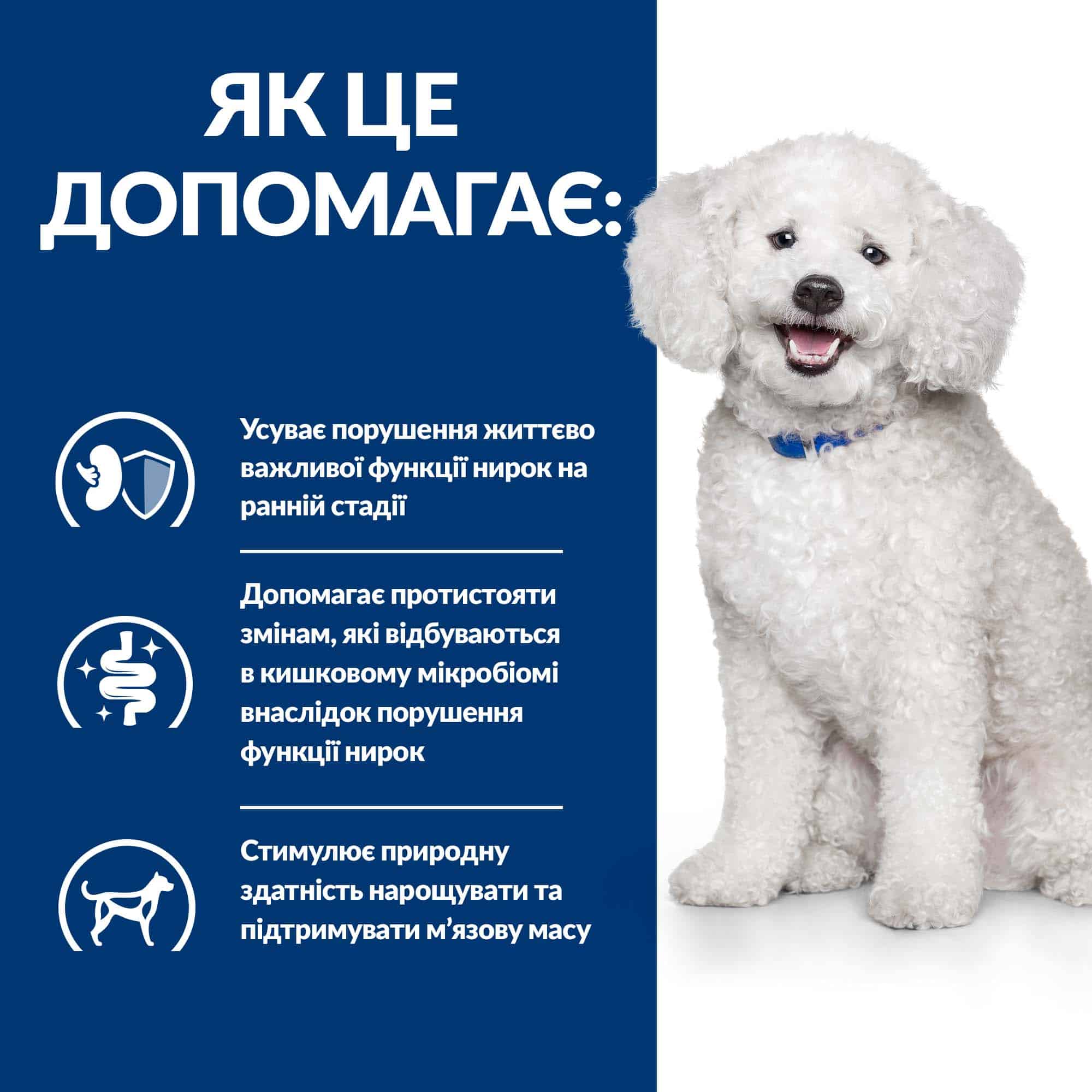 - Підтримує життєво важливу функцію нирок та загальний здоровий стан організму собак на ранніх стадіях захворювання.