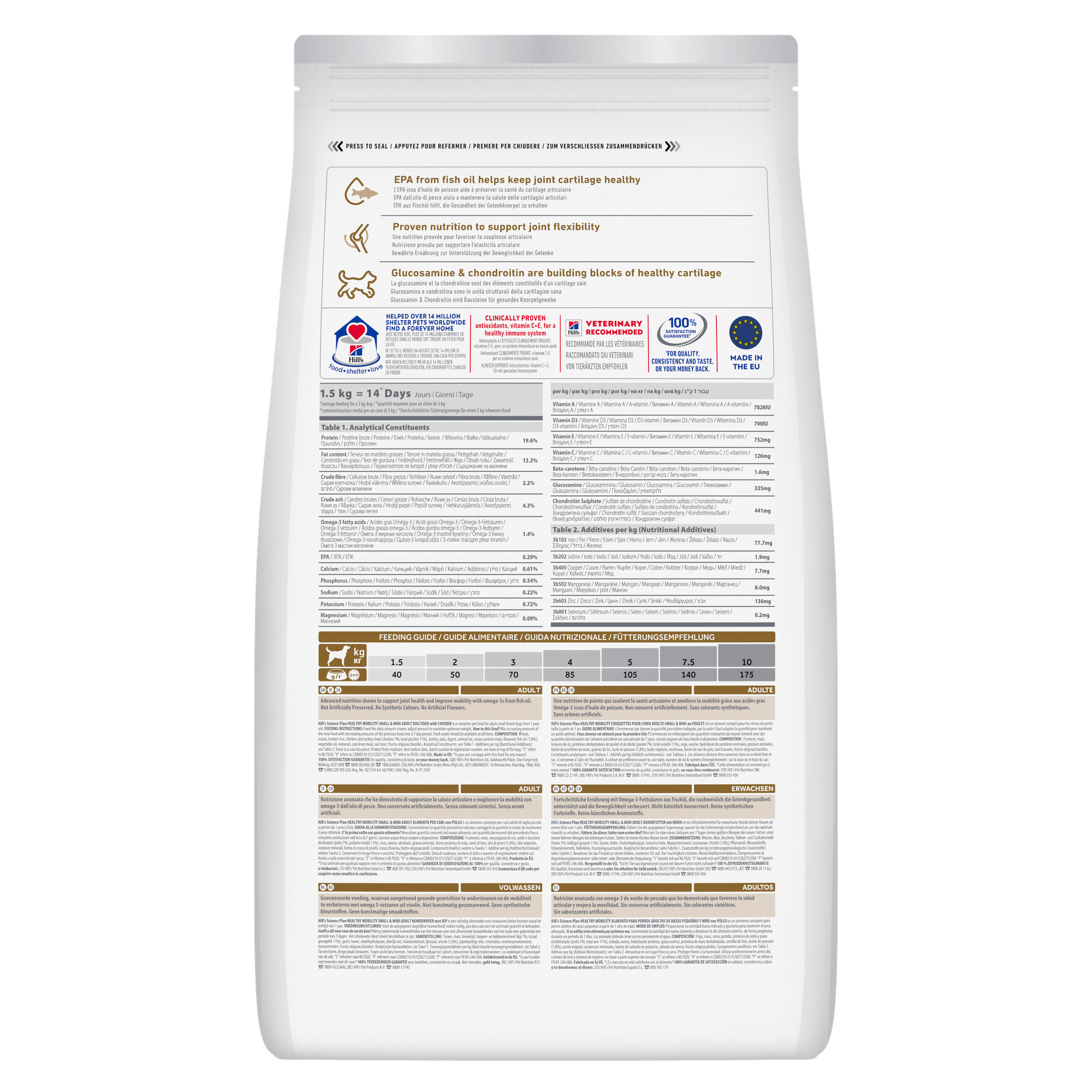 Сухий корм Hill’s SCIENCE PLAN Adult Healthy Mobility Small&Mini з курятиною – повнораціонне харчування для дорослих собак малих і мініатюрних порід, розроблене для підтримки здоров’я суглобів та оптимальної рухливості. Раціон створений дієтологами та ветеринарними лікарями Hill’s для забезпечення енергії, життєвої сили та підтримки загального стану здоров’я собак малих порід.