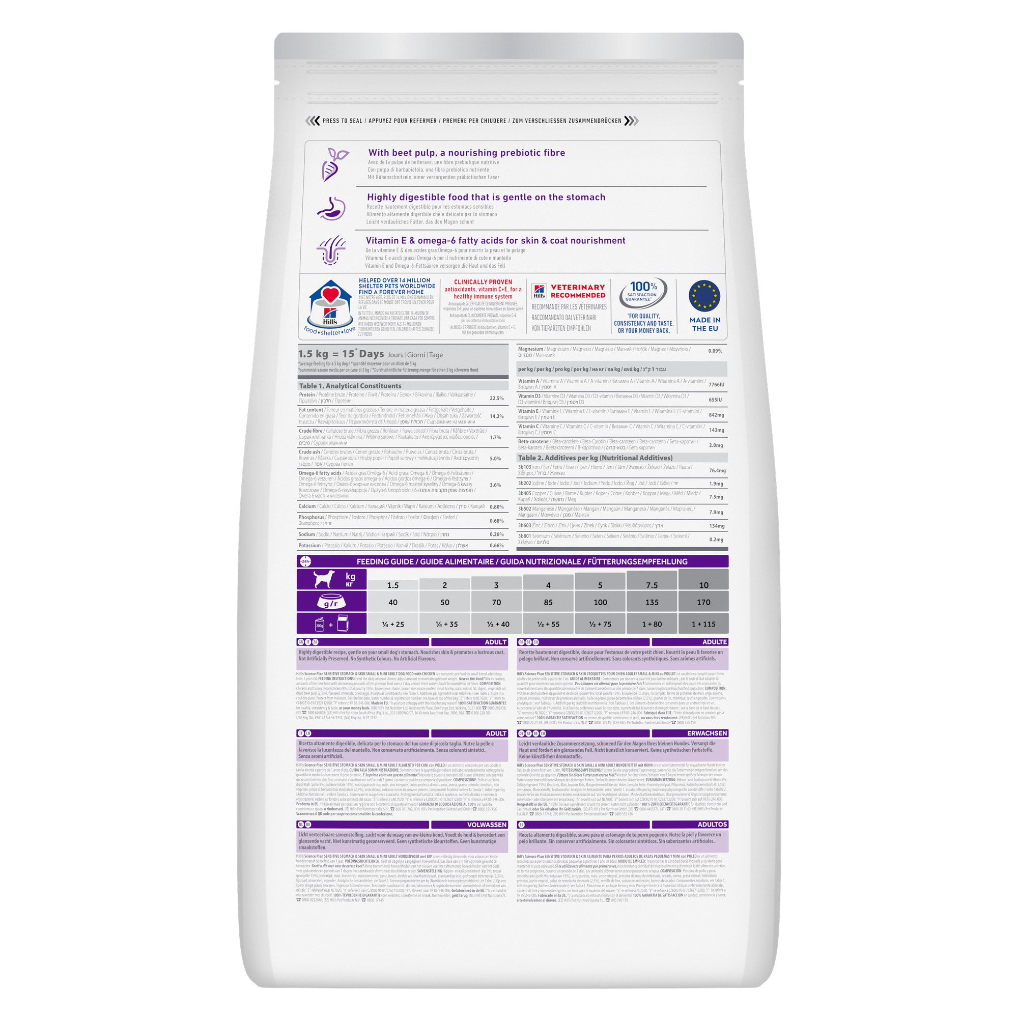 Собаки малих і мініатюрних порід із чутливим травленням потребують спеціального балансу легкозасвоюваних інгредієнтів і мінералів для підтримки здоров’я шлунково-кишкового тракту та органів. Формула Hill’s SCIENCE PLAN Adult Sensitive Stomach & Skin Small & Mini сприяє комфортному травленню, підтримує імунну систему та забезпечує привабливий смак корму, який собака із задоволенням споживатиме щодня.