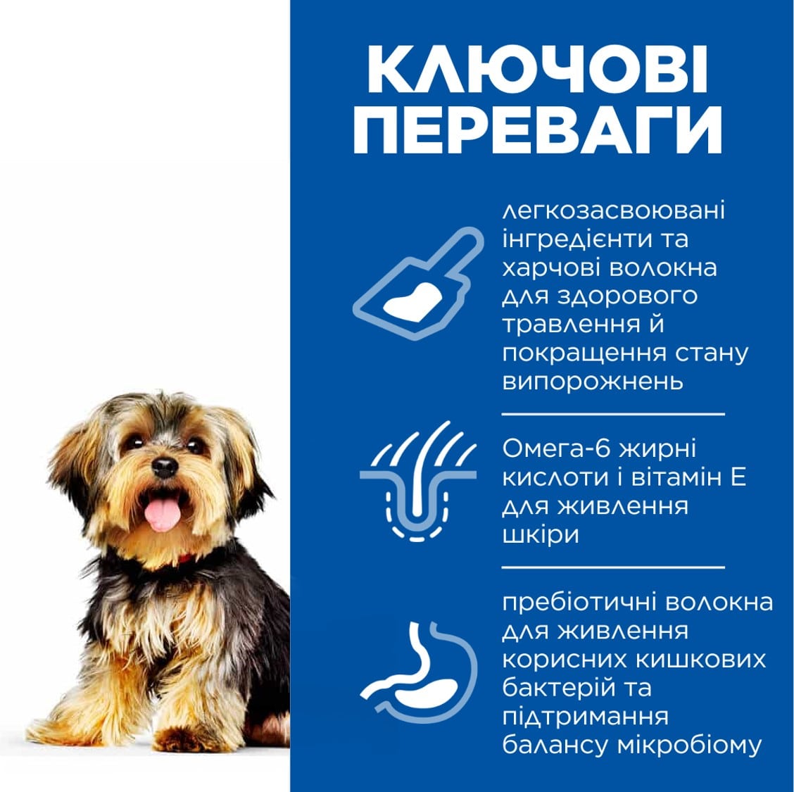 - Легкозасвоювані інгредієнти не обтяжують шлунок і забезпечують легке прибирання випорожнень.