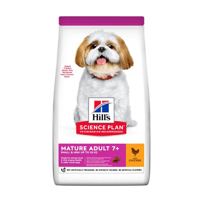 Сухий корм Hill’s SCIENCE PLAN Mature Adult 7+ Small&Mini з курятиною – це повнораціонне харчування для собак малих і мініатюрних порід від 7 років, розроблене з урахуванням вікових змін у метаболізмі та особливих потреб організму зрілих собак. Раціон створений дієтологами та ветеринарними лікарями Hill’s для підтримки оптимальної маси тіла, здоров’я серця, нирок, сечового міхура та загальної фізичної активності улюбленця в період його зрілого віку.