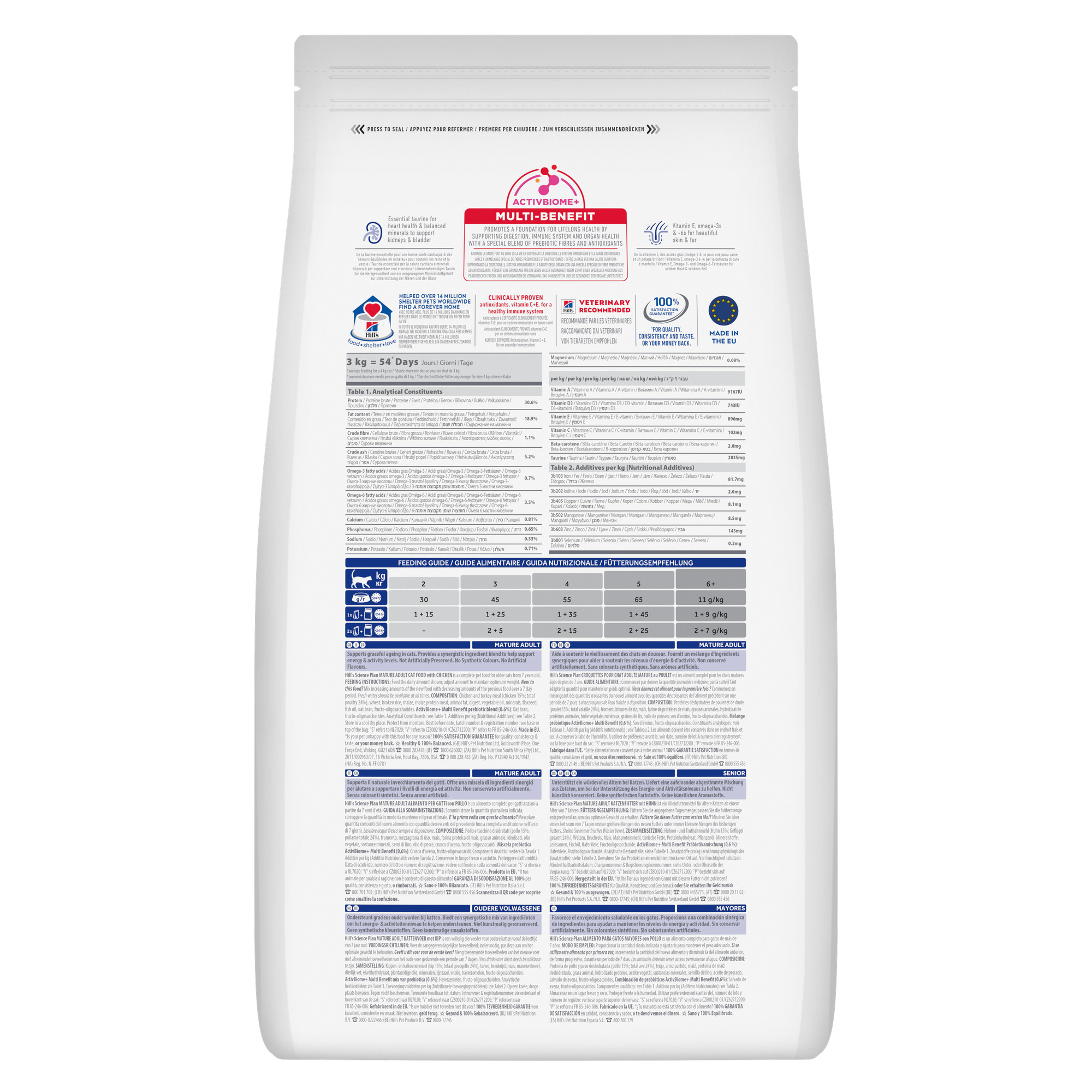 Сухий корм Hill’s SCIENCE PLAN Mature Adult 7+ з курятиною – це повнораціонне харчування для дорослих котів віком від 7 років, розроблене дієтологами та ветеринарними лікарями Hill’s з урахуванням вікових змін в організмі тварини. Раціон спрямований на підтримку належного рівня енергії, зміцнення імунної системи та здоров’я життєво важливих органів у період зрілого віку.