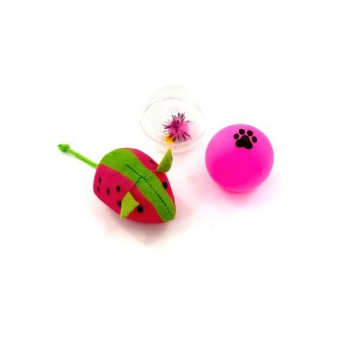HIPPIE PET Набір іграшок для котів Мишка та два м'ячика, рожевий і зелений 3 шт