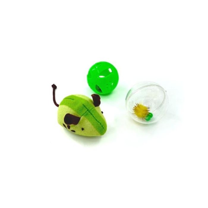 HIPPIE PET Набір іграшок для котів Мишка та два м'ячика, зелений 3 шт