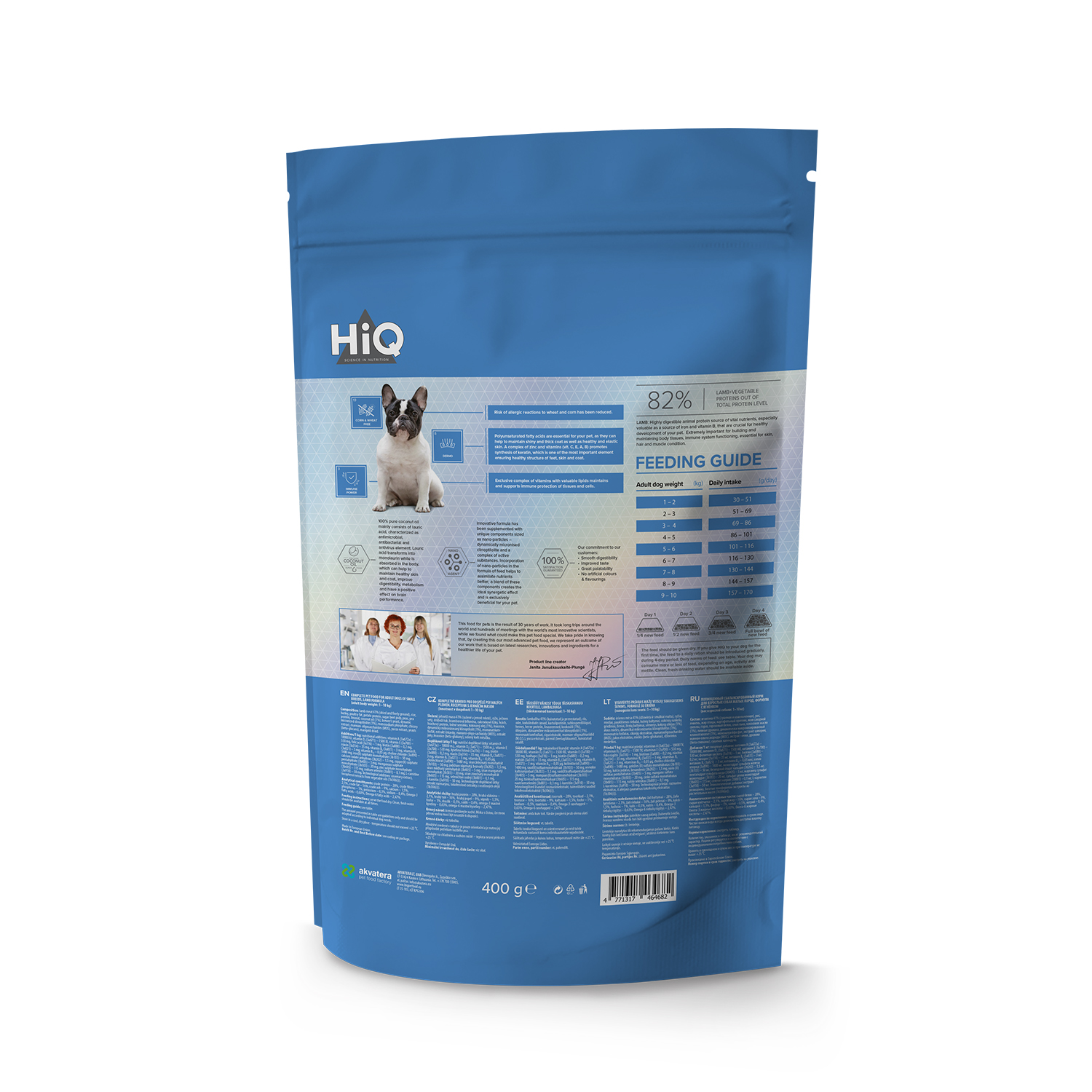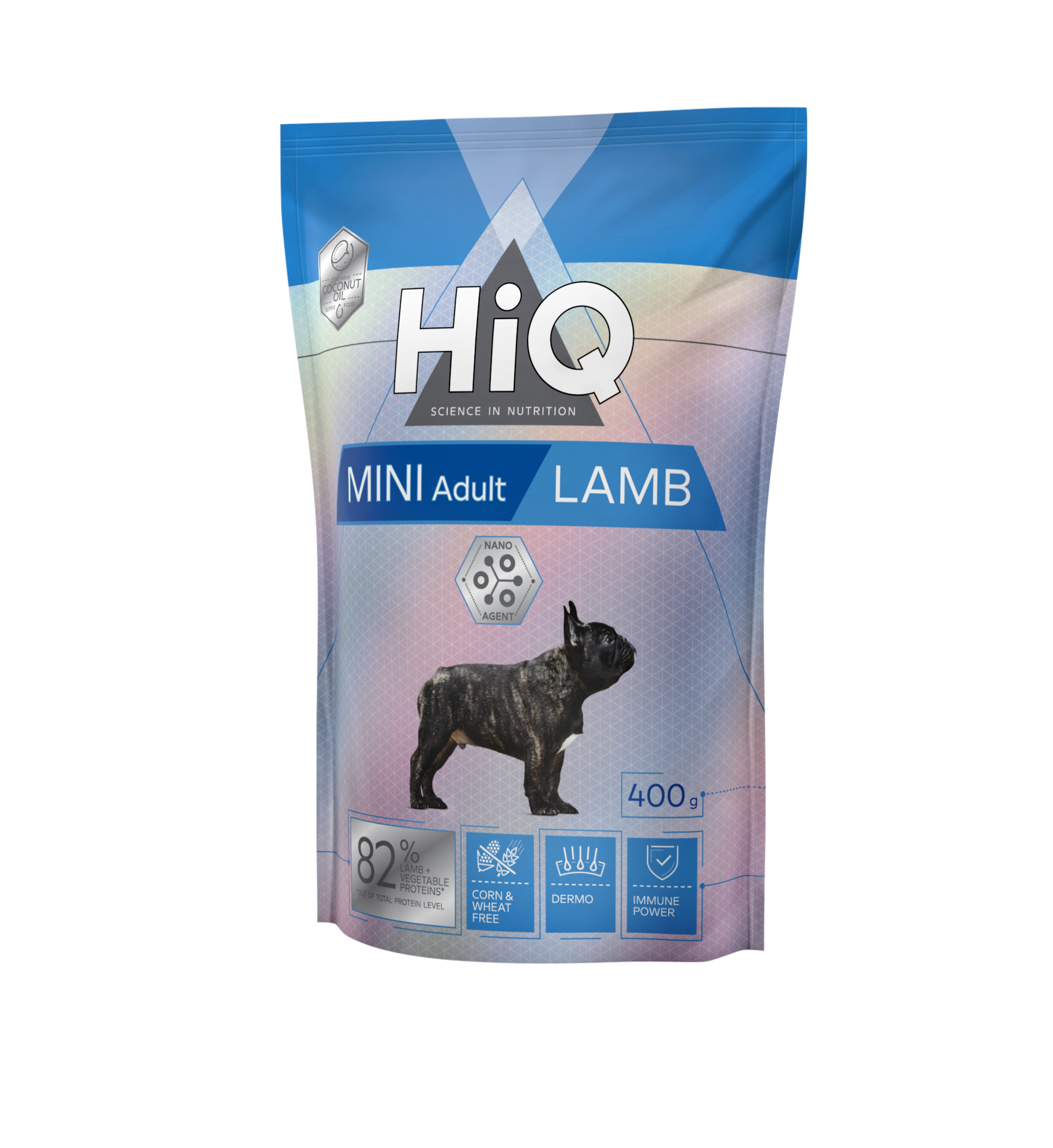 „HiQ Mini Adult Lamb“ – повнораціонний сухий корм Супер-преміум класу з ягнятиною для дорослих собак малих порід (вага дорослої тварини 1-10 кг). Ретельно підібране поєднання активних речовин сприяє енергійності, здоров'ю та тривалості життя домашнього вихованця.