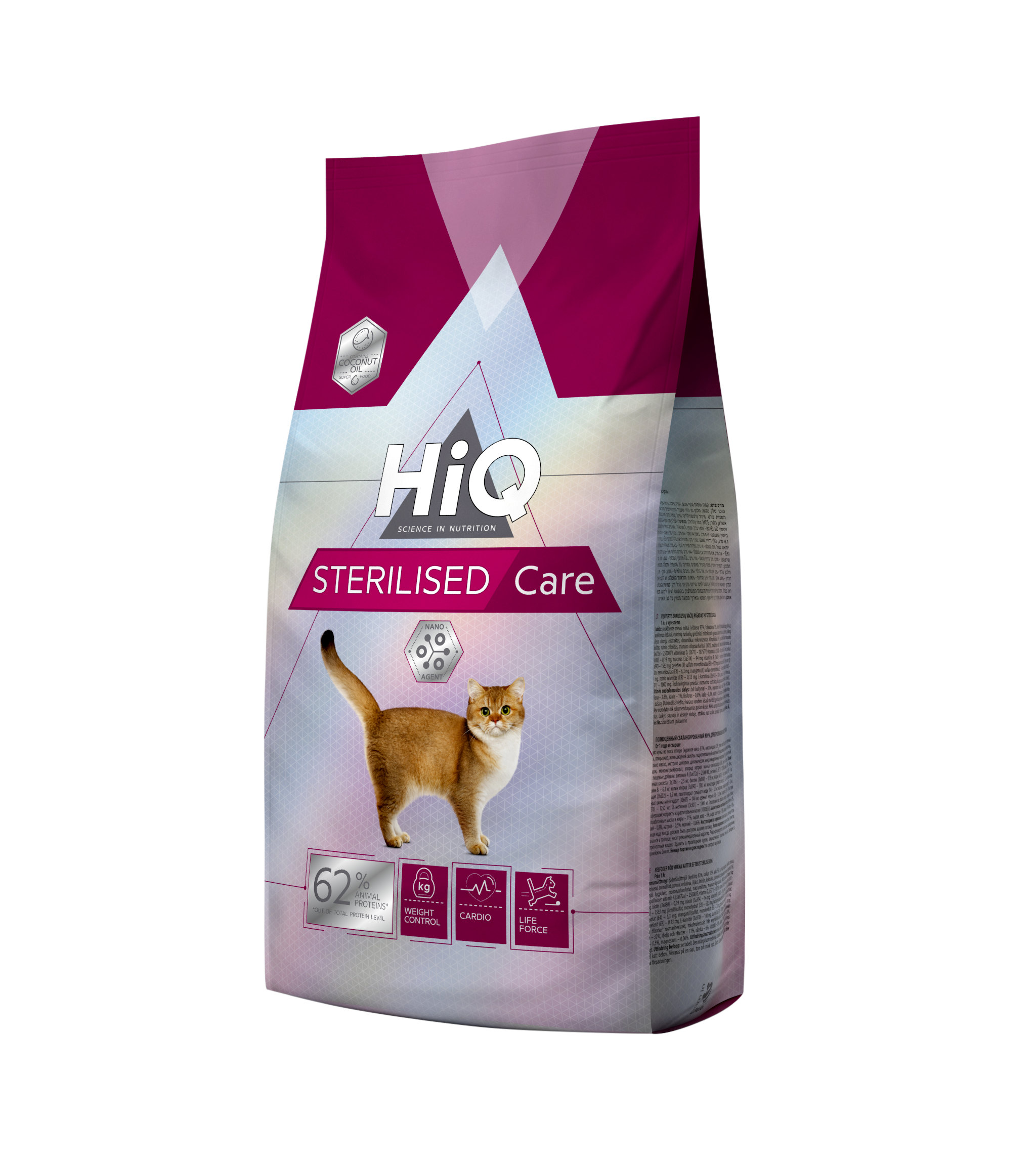 „HiQ Sterilised Care “ – сухий корм Супер-преміум класу для стерилізованих кішок і кастрованих котів (від 1 року). Продукт сприяє покращенню обміну речовин і роботи травної системи підтримці оптимальної ваги домашнього вихованця.