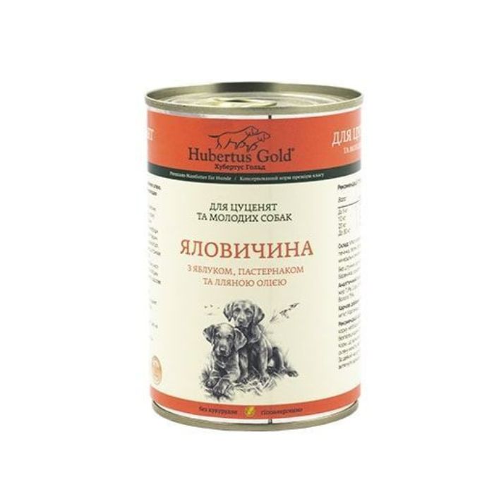 Вологий корм Hubertus Gold Rind mit Apfel & Pastinake з яловичиною, яблуком і пастернаком створений для підтримки нормального розвитку цуценят і юніорів, забезпечує надходження в організм усіх необхідних поживних речовин, мінералів і вітамінів. Корм рекомендовано подавати за кімнатної температури з постійним доступом до свіжої питної води.