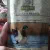 Склад: качка – 60%, бульйон – 26,7%, курячі сердечка – 10%, суміш овочів – 2%, мінеральні речовини – 1%, лляна олія – 0,2%, польові трави – 0,1%.