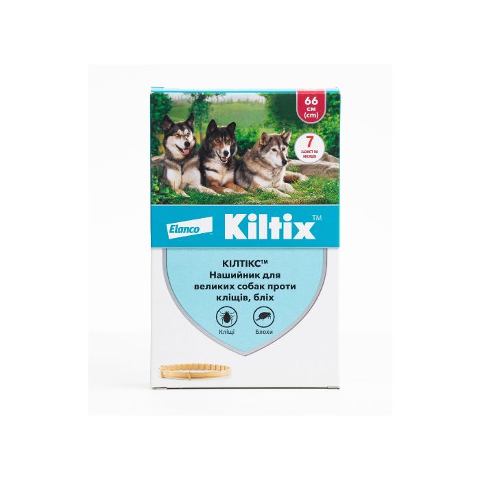 - Постійне використання нашийника Кілтікс для середніх та великих собак забезпечує захист тварини від ектопаразитів протягом 7 місяців, для маленьких собак – 6 місяців.