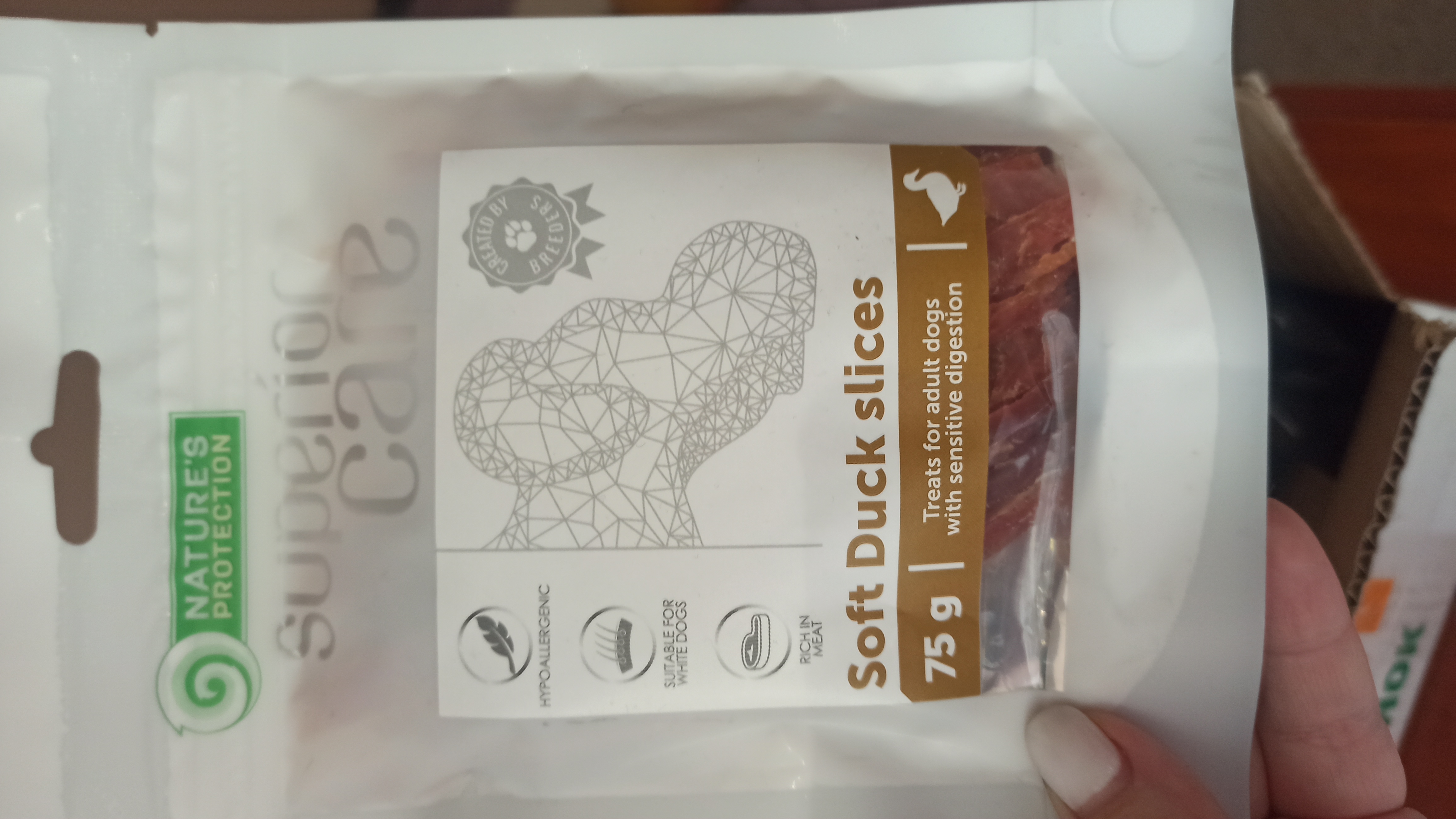 Ласощі Nature's Protection Superior Care – це високоякісні, натуральні, унікальні смаки та різні види ласощів, розроблені з урахуванням потреб різних домашніх улюбленців. Не містять штучних барвників і підсилювачів смаку. До складу входить високоякісна качка – нежирне м'ясо птиці з гіпоалергенними властивостями.