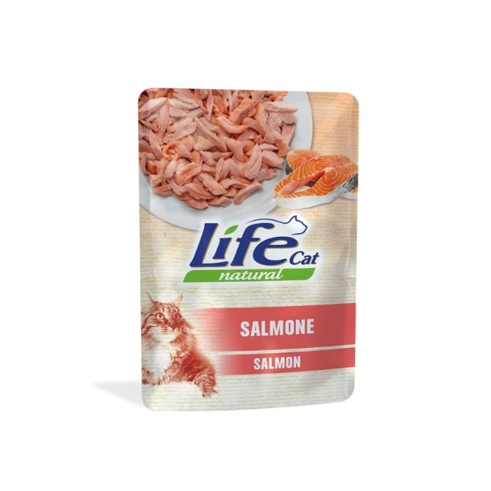 Натуральний вологий корм з лососем для дорослих котів Lifecat Natural містить цільні шматочки риби та рис, збагачений необхідними вітамінами й мінералами для збалансованого раціону вихованця. Шматочки риби подаються в овочевому желе, тому корм має ніжну консистенцію.