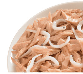 Склад: Тунець тихоокеанський (70%), анчоуси (5%), рис (2%), бульйон