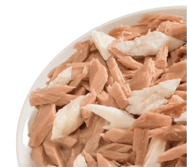 - Тунець – легкозасвоюваний і нежирний, збагачений Омега-3 жирними кислотами, надзвичайно корисними для шерсті та шкіри улюбленців, містить вітаміни, важливі для належної підтримки загального стану здоров’я улюбленця; це гіпоалергенне джерело білка;