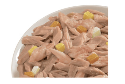 - Тунець – легкозасвоюваний і нежирний, збагачений Омега-3 жирними кислотами, надзвичайно корисними для шерсті та шкіри улюбленців, містить вітаміни, важливі для належної підтримки загального стану здоров’я улюбленця; це гіпоалергенне джерело білка;