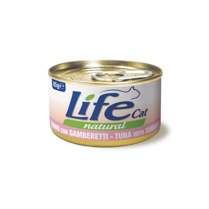 Натуральний вологий корм з тунцем і креветками для дорослих котів Lifecat Natural містить цільні шматочки риби та креветок, збагачений необхідними вітамінами й мінералами для збалансованого раціону вихованця.