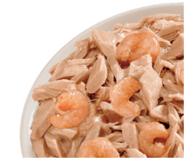 Склад: Тунець тихоокеанський (68%), креветки (7%), рис (2%), бульйон.