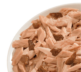 - Тунець – легкозасвоюваний і нежирний, збагачений Омега-3 жирними кислотами, надзвичайно корисними для шерсті та шкіри улюбленців, містить вітаміни, важливі для належної підтримки загального стану здоров’я улюбленця; це гіпоалергенне джерело білка;