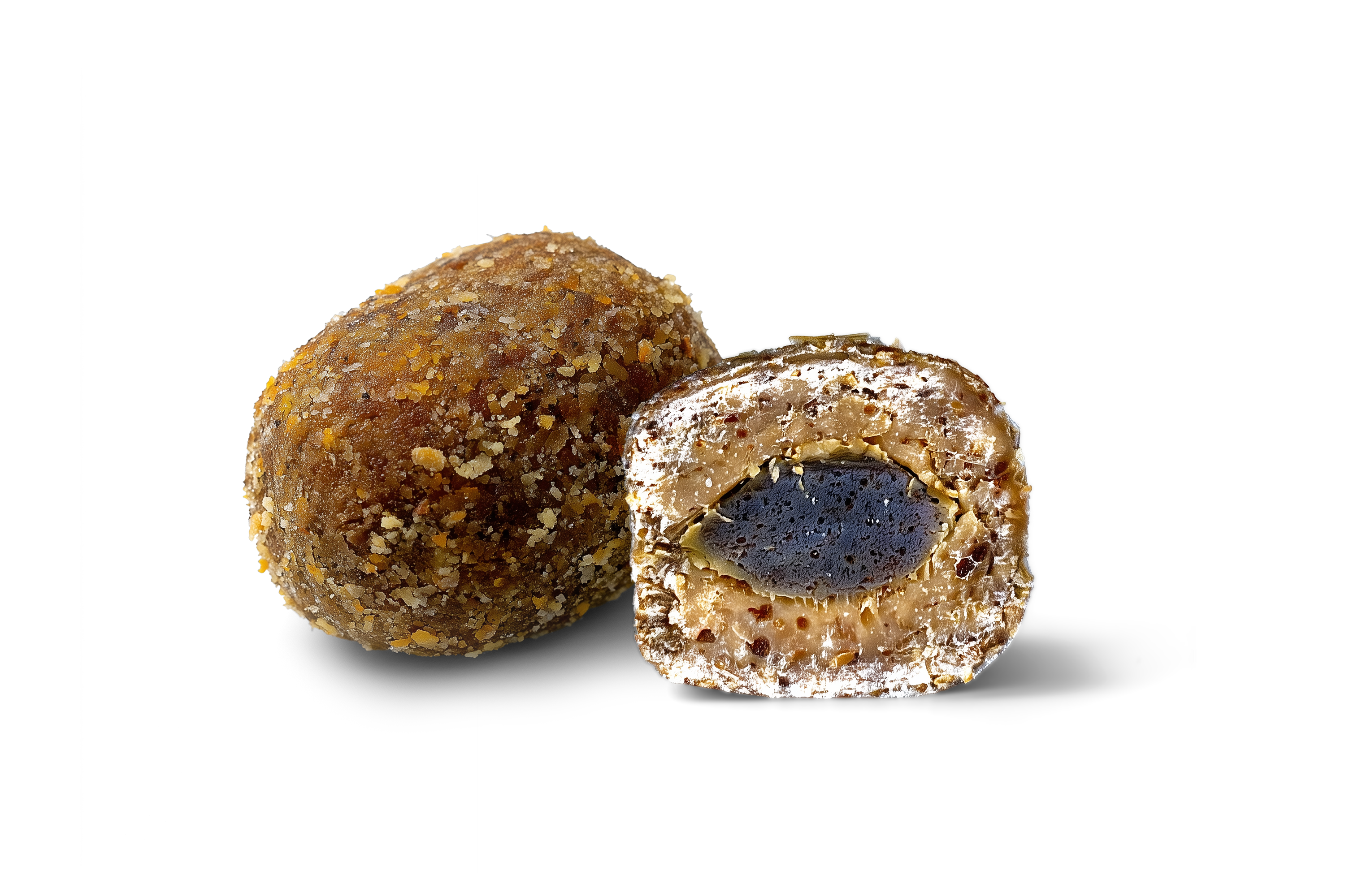 Склад: сушене мелене яловиче м’ясо (33,5%), сушена мелене солодка картопля (20%), свинячий желатин (20%), цільнозернові вівсяні пластівці (17%), спіруліна (3%), D-глюкозамін сульфат (1,5%), колагенові пептиди (1%), хондроїтин сульфат (1%), омега-3 (0,7%), гіалуронова кислота (0,2%), аскорбінова кислота (0,2%), зелено-губчаста мідія (0,2%), альбумін, суміш сушених трав, гліцерин, олія лосося.