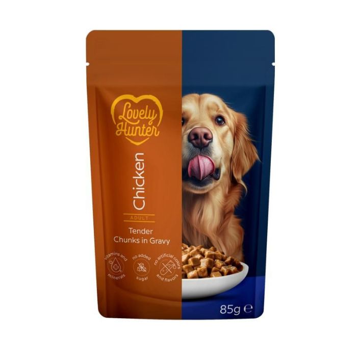 Повноцінний вологий корм Lovely Hunter з куркою створений для дорослих собак усіх порід. Шматочки в соковитому соусі – для підтримки м’язів, енергії та щоденного комфорту улюбленця. Формула забезпечує збалансоване харчування, підтримує імунітет, здоров’я шкіри та шерсті. Кожен прийом їжі дарує собаці енергію, сприяє гарному самопочуттю та щоденній активності. Завдяки апетитним шматочкам у соусі корм відмінно смакує навіть вибагливим улюбленцям.