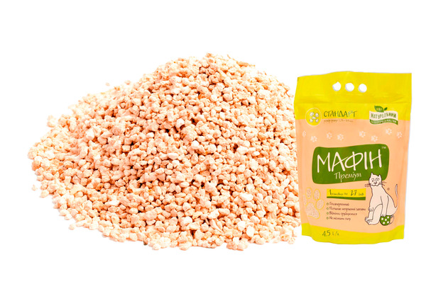 «Мафін Преміум» – це гігієнічні наповнювачі для котячих туалетів, що відмінно вбирають вологу та неприємні запахи. Завдяки властивостям сировини ці наповнювачі – безпечні для пухнастих, адже не спричиняють подразнень і алергічних реакцій.