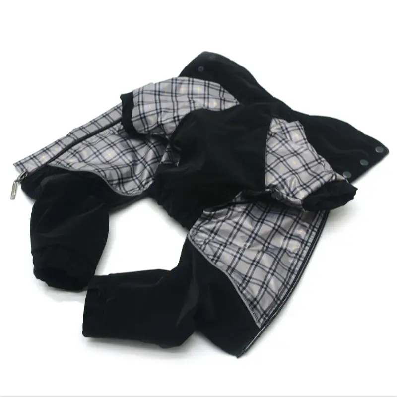 Вироби виготовлені з водонепроникної болоньї та має флісовий підклад. Комбінезон застібається на блискавку в області спини. Добре фіксується на тілі вихованця, щоб не зісковзувати під час руху, і має утеплені манжети на лапках, щоб не пропускати холод.