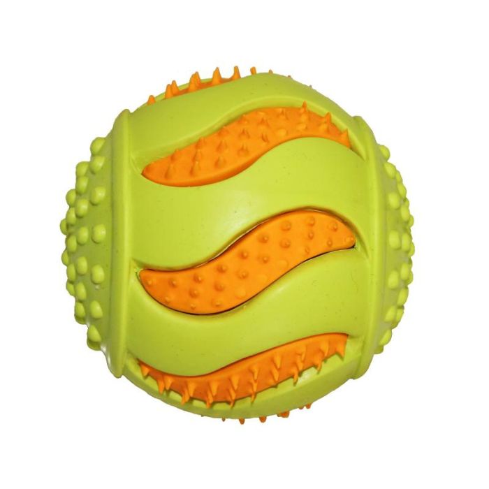 Іграшки для собак MISOKO з колекції SPORTY PAWS – ідеальні для енергійних улюбленців, які полюбляють жувати. Ця компактна іграшка у формі м’ячика з рельєфними елементами на поверхні розроблена спеціально для активних собак: конструкція з гуми забезпечує безпечну гру, а текстурована поверхня стимулює ясна та підтримує гігієну ротової порожнини.
