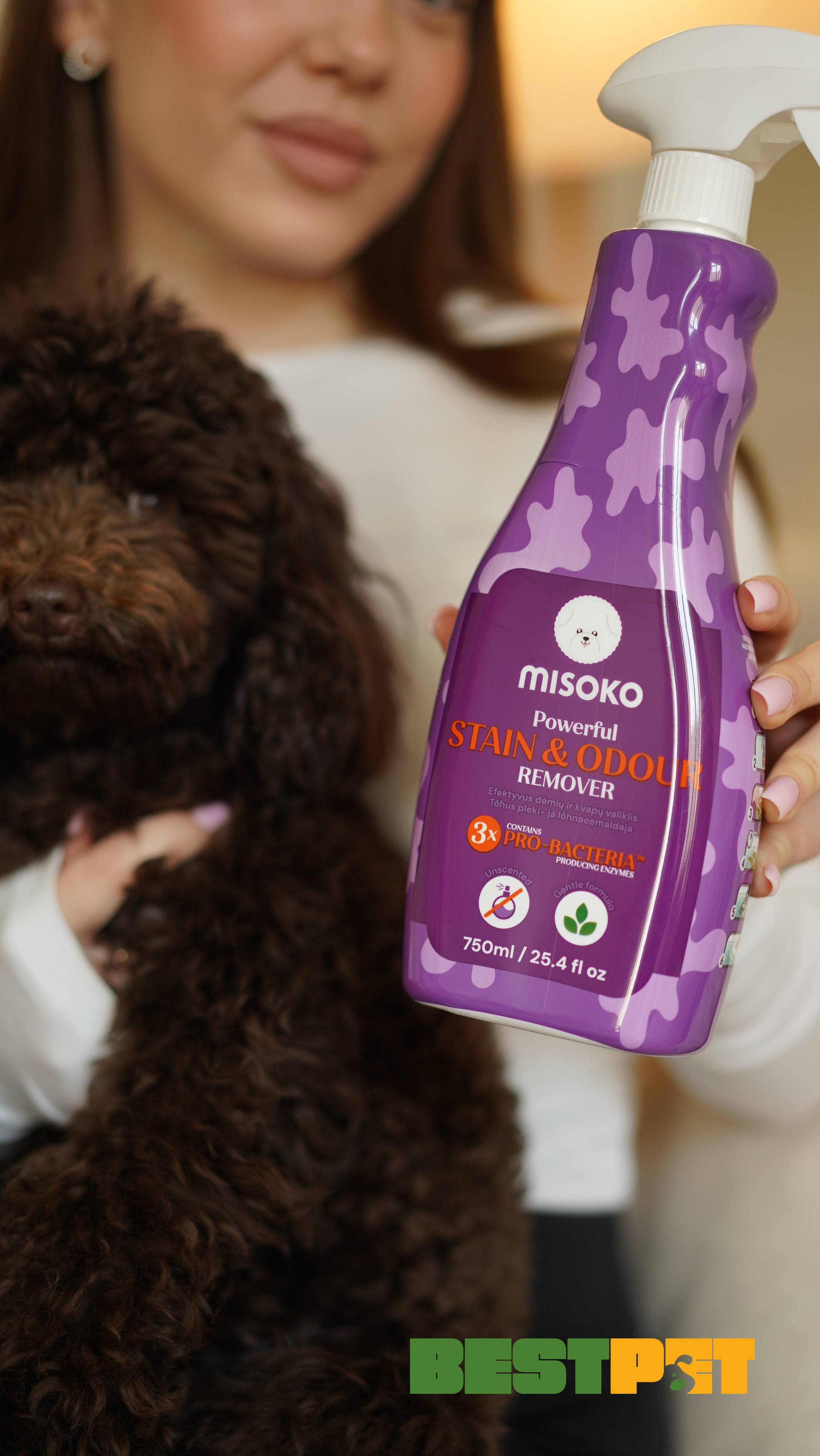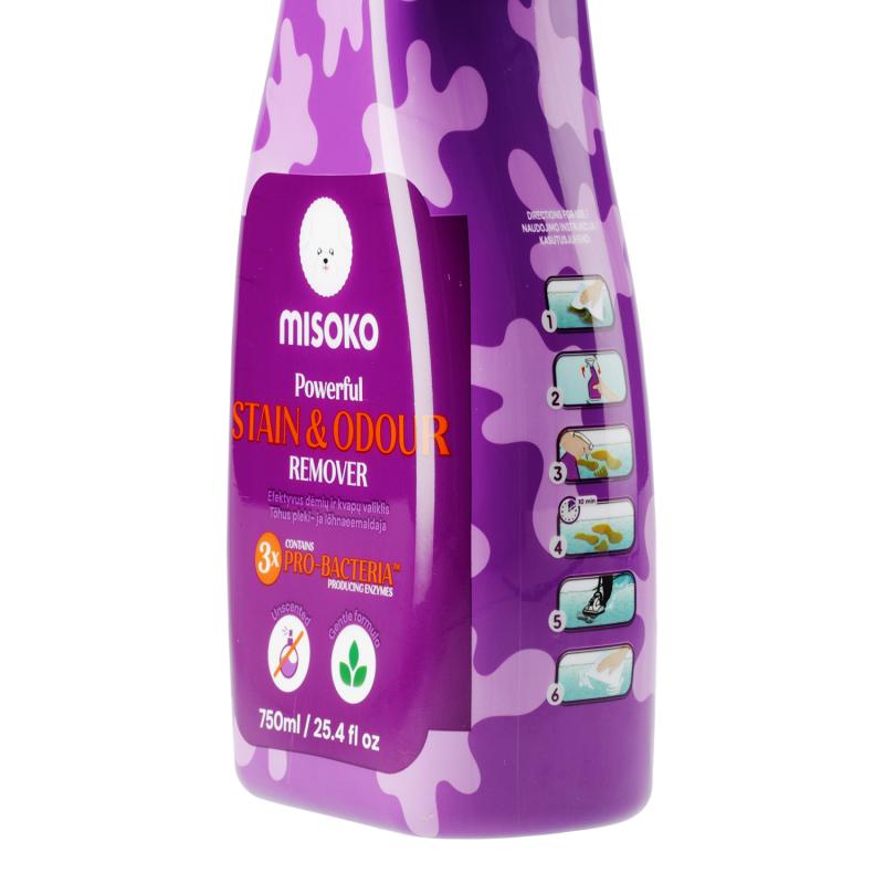 Очищувач запахів і плям для собак MISOKO – це щоденний помічник для підтримки чистоти й комфорту в оселі, де мешкає улюбленець. Засіб створений для ефективного усунення органічних забруднень і запахів без маскування, з урахуванням безпеки для тварин і дітей. Біоактивна формула з PRO-BACTERIA™ працює природним шляхом, нейтралізуючи джерело запаху на молекулярному рівні. Підходить для регулярного використання на різних поверхнях у домашньому просторі.
