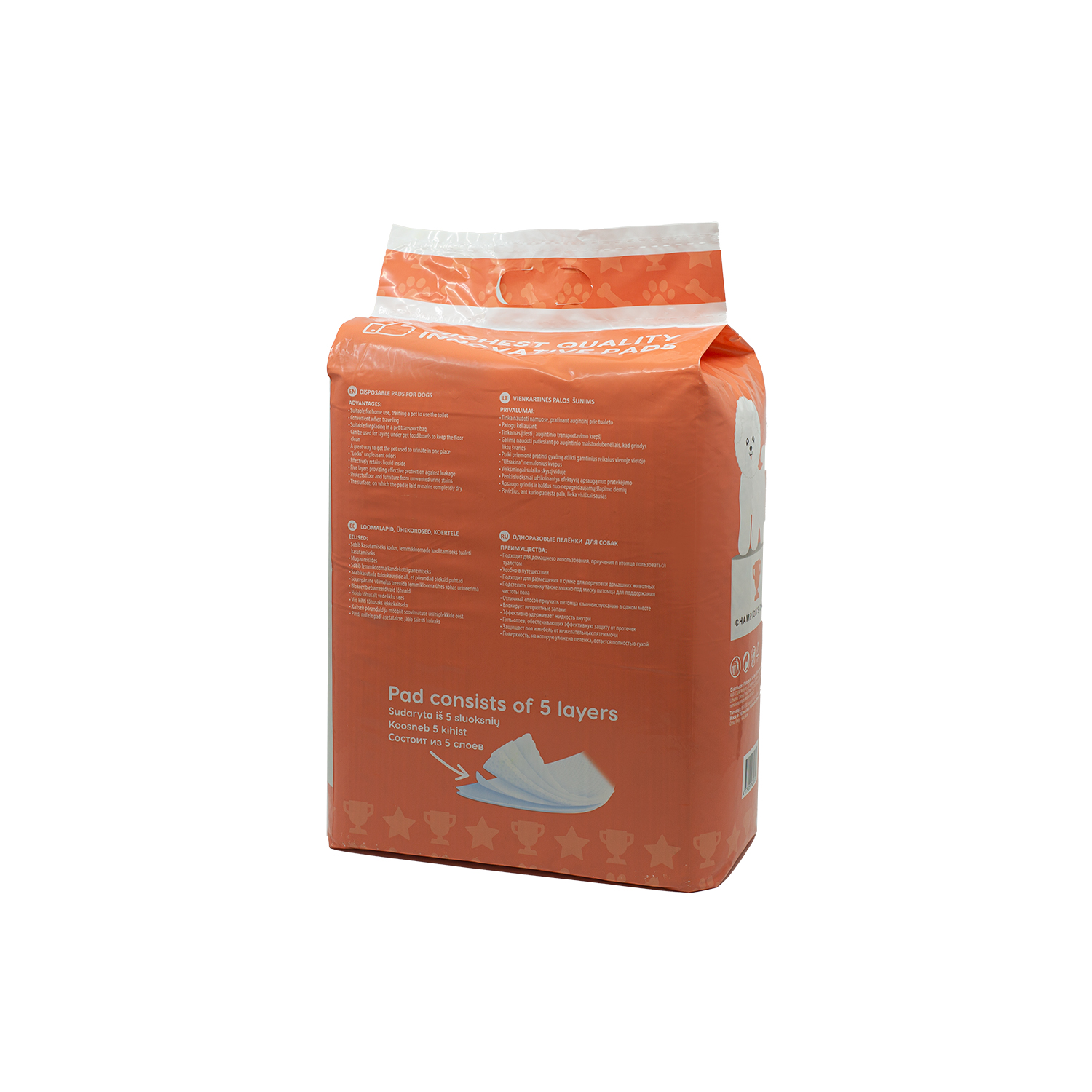- Четвертий і п'ятий шари гарантують, що рідина залишиться всередині пелюшки і що Ваша підлога або меблі будуть надійно захищені.