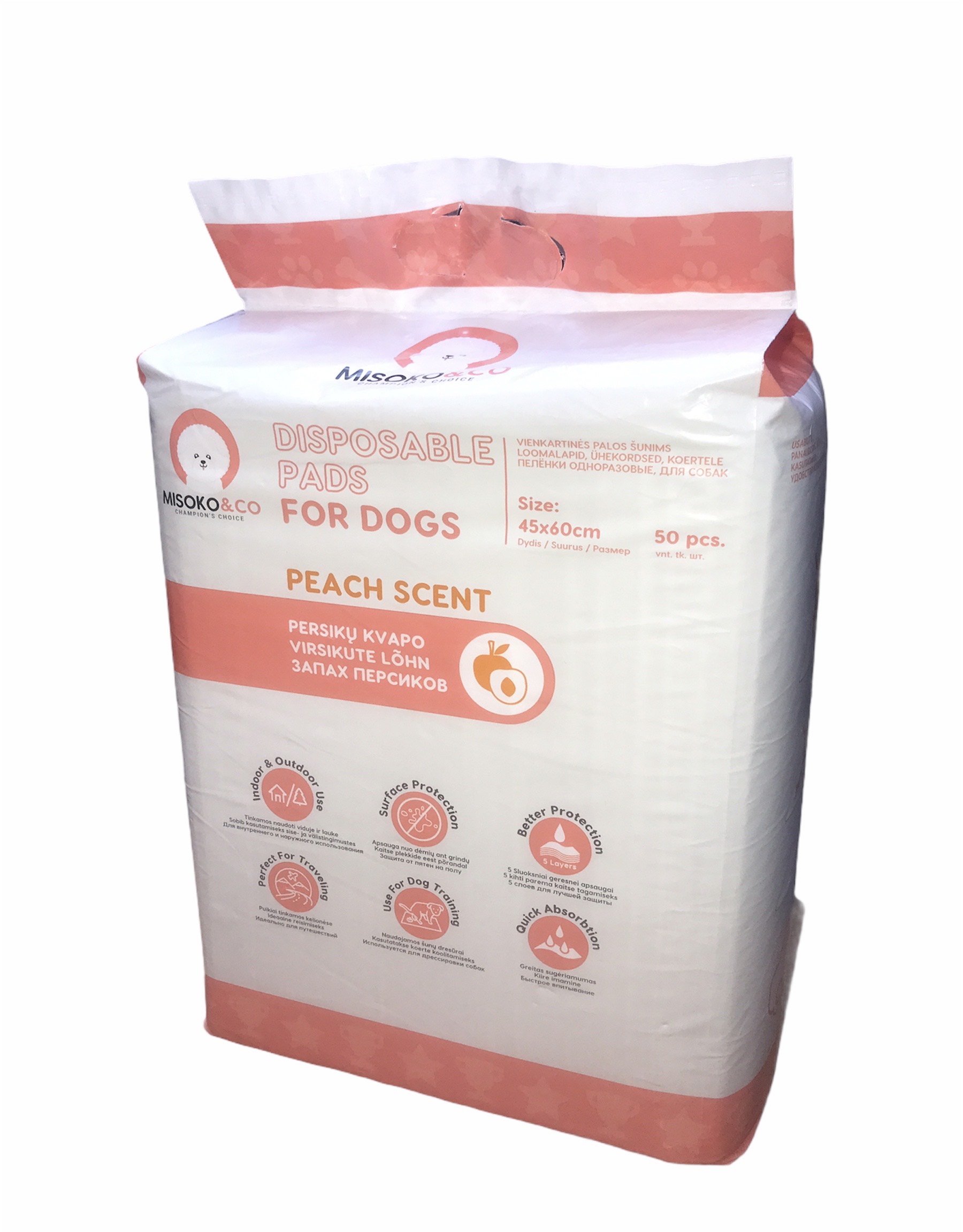 Одноразові пелюшки Misoko & Co – практичний гігієнічний засіб, який має бути в будинку кожного власника собаки. Високоякісні та високовбираючі 5-шарові пелюшки стануть у нагоді як для процесу навчання вихованця навичкам гігієни, так і для захисту підлоги або меблів від «неприємних несподіванок».
