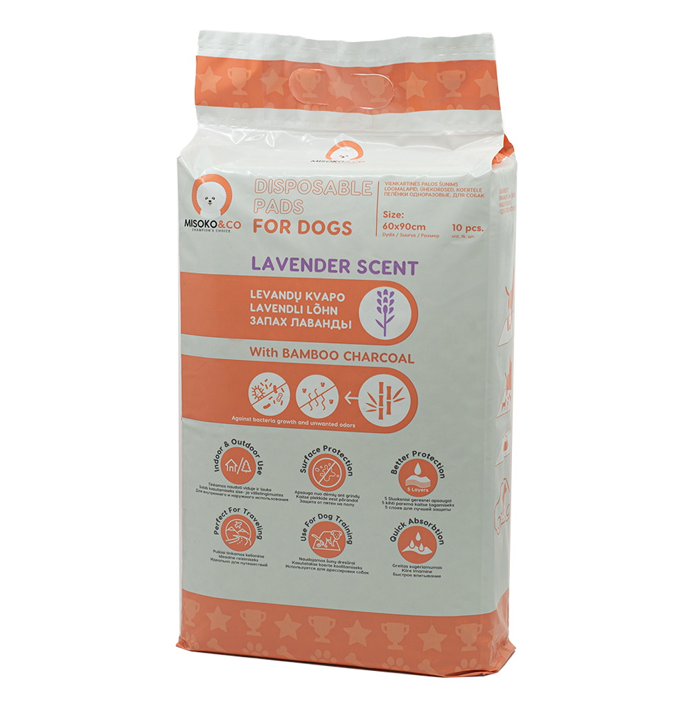 MISOKO Одноразові пелюшки для собак з вугіллям та ароматом лаванди, 60*90 см, 10 шт