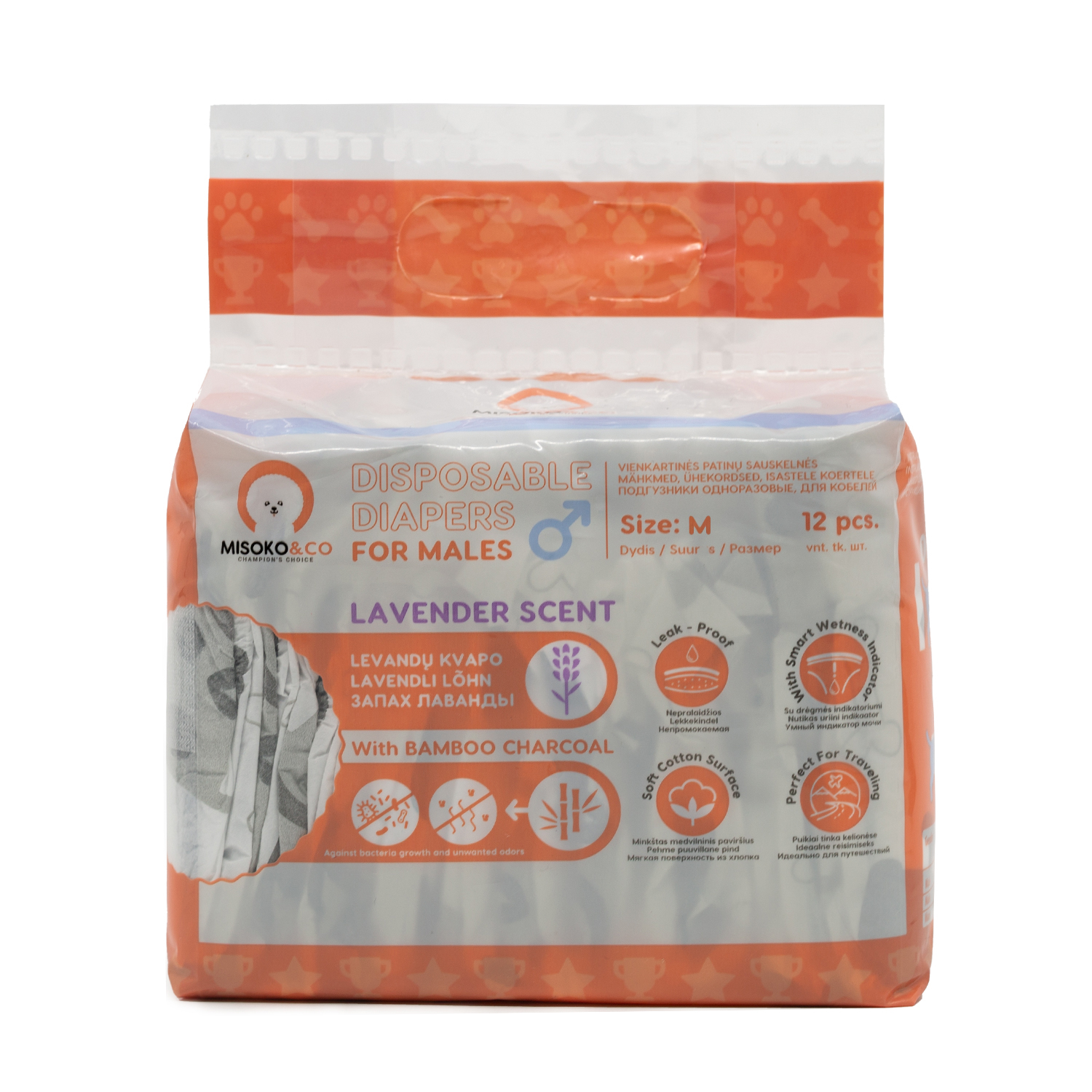 MISOKO Одноразові підгузки для кобелів з вугіллям, індикатором вологості та ароматом лаванди (цуценята), M