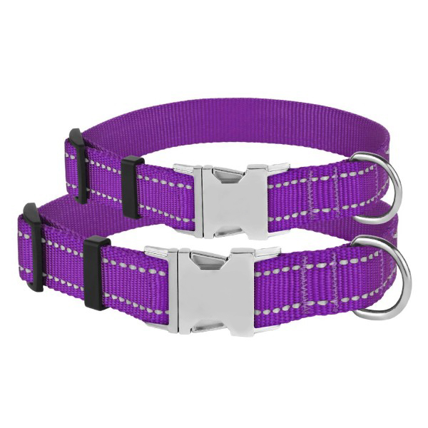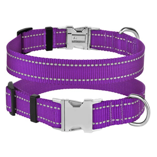 - Нашийник виконаний з вплетеними світловідбиваючими нитками та укомплектований міцною металевою пряжкою з можливістю нанесення гравіювання.
