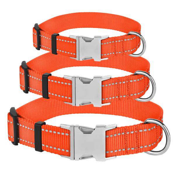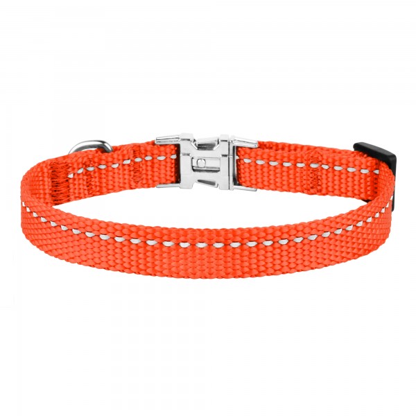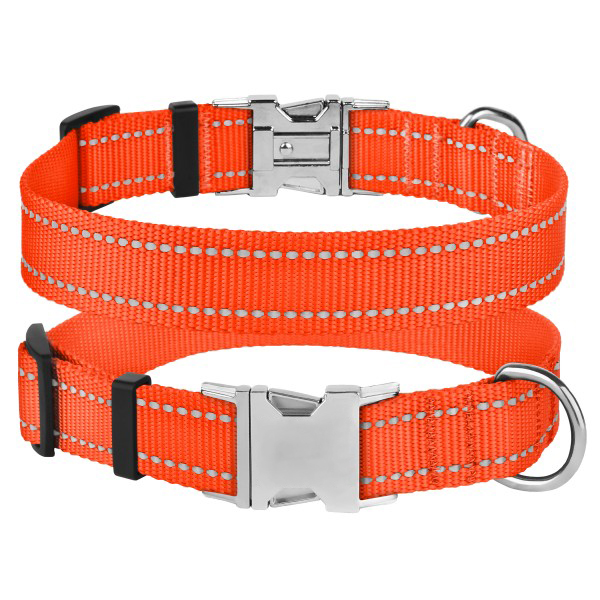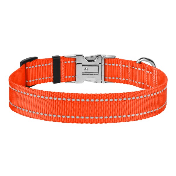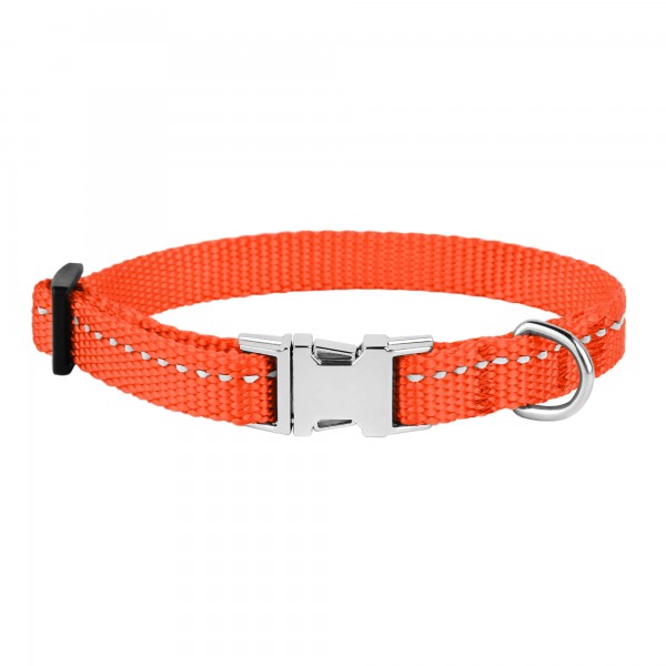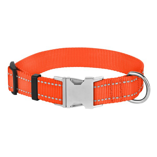 - Нашийник виконаний з вплетеними світловідбиваючими нитками та укомплектований міцною металевою пряжкою з можливістю нанесення гравіювання.