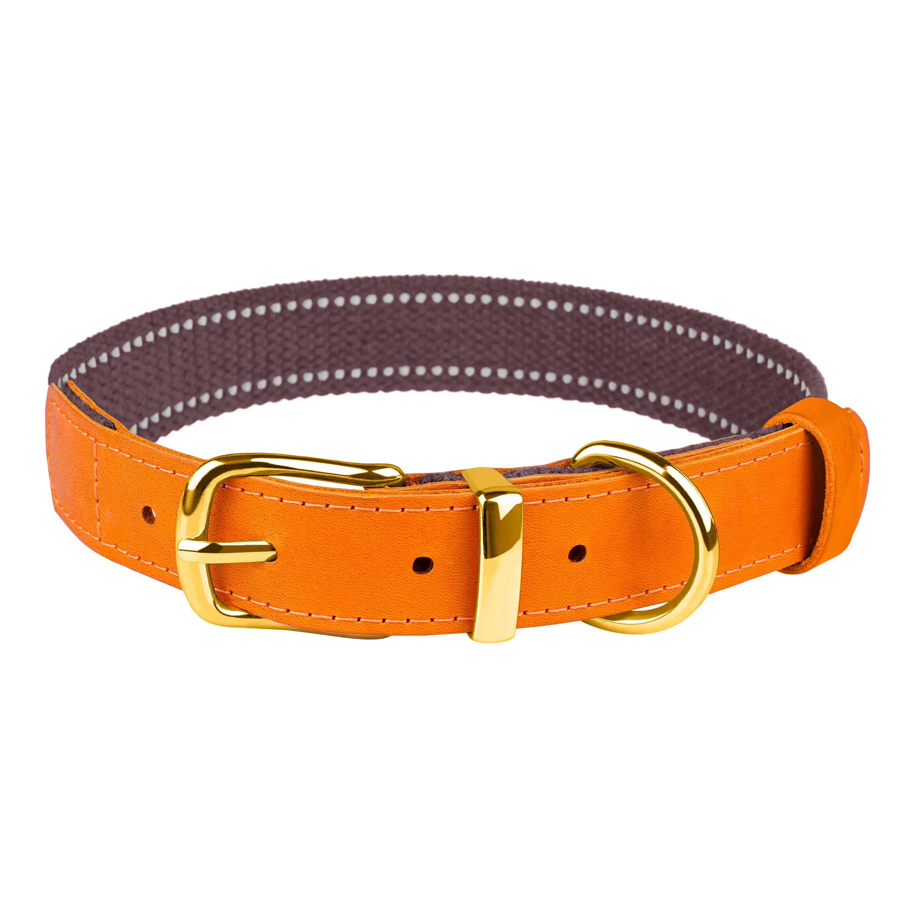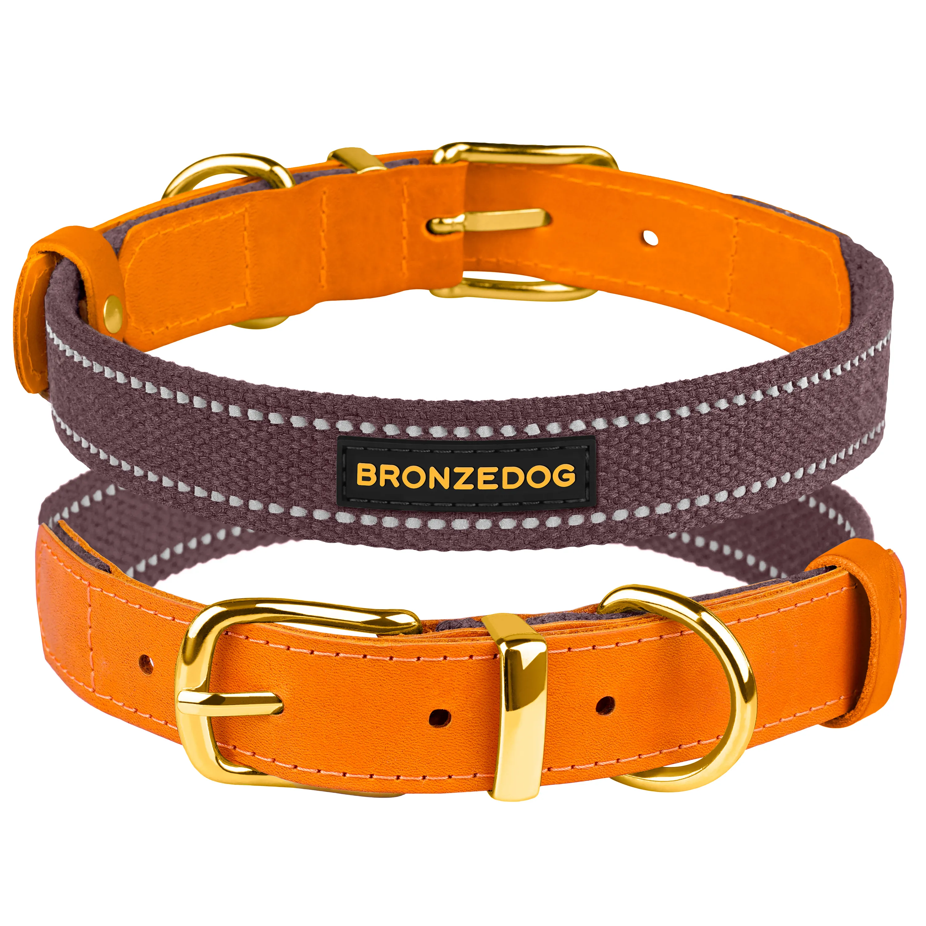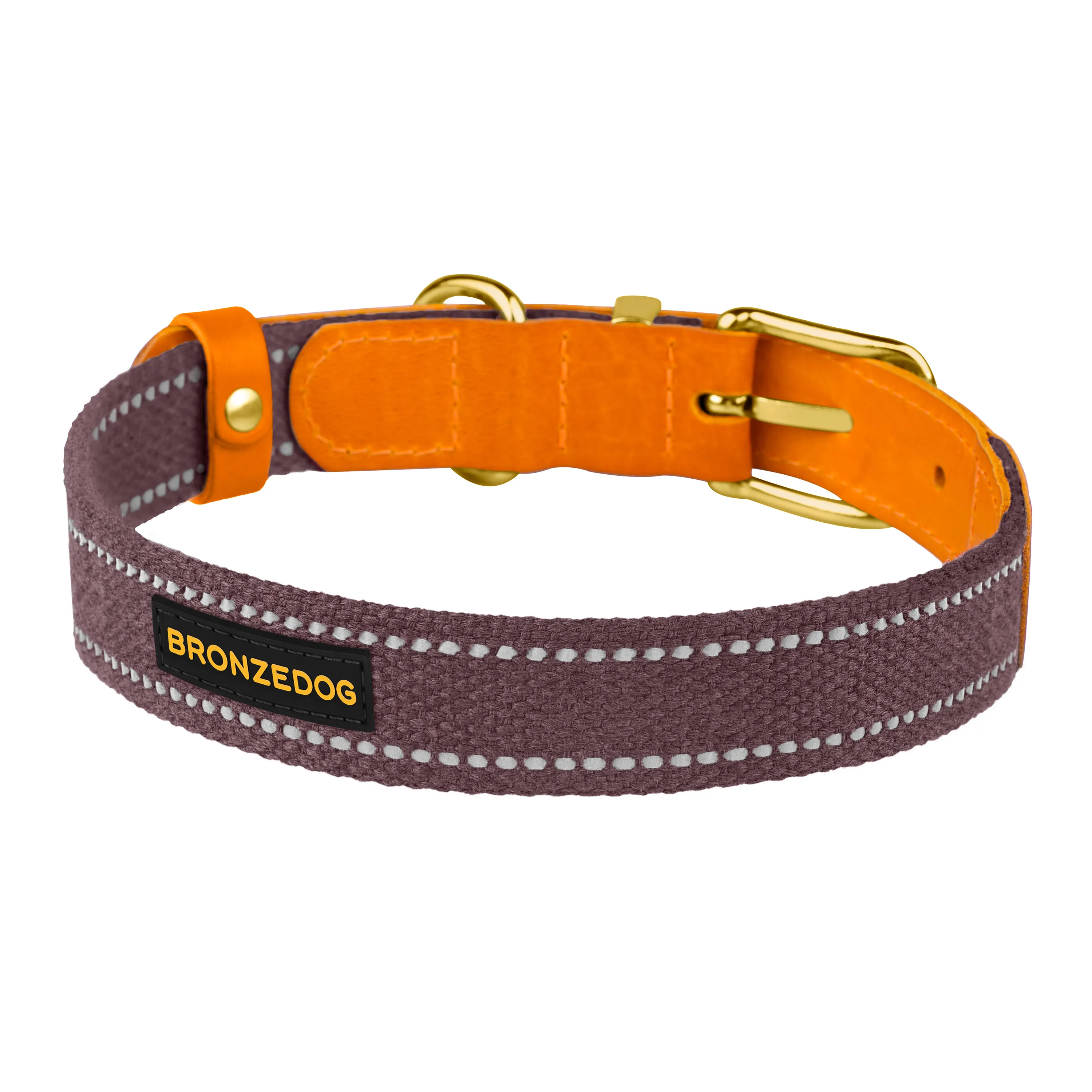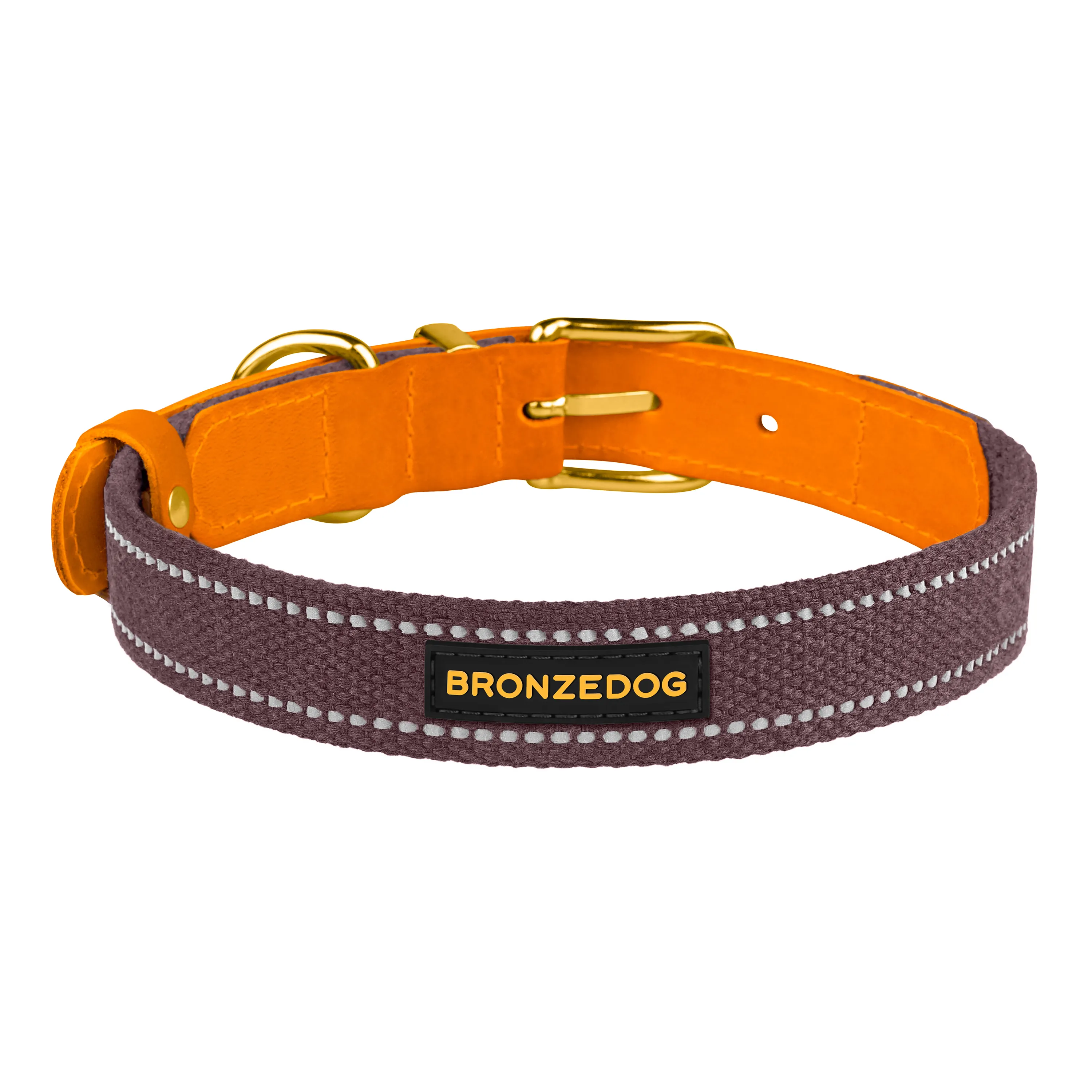 Barksi Нашийник для собак Брезент + Шкіра з металевою пряжкою рудий з черрі, розмір XL