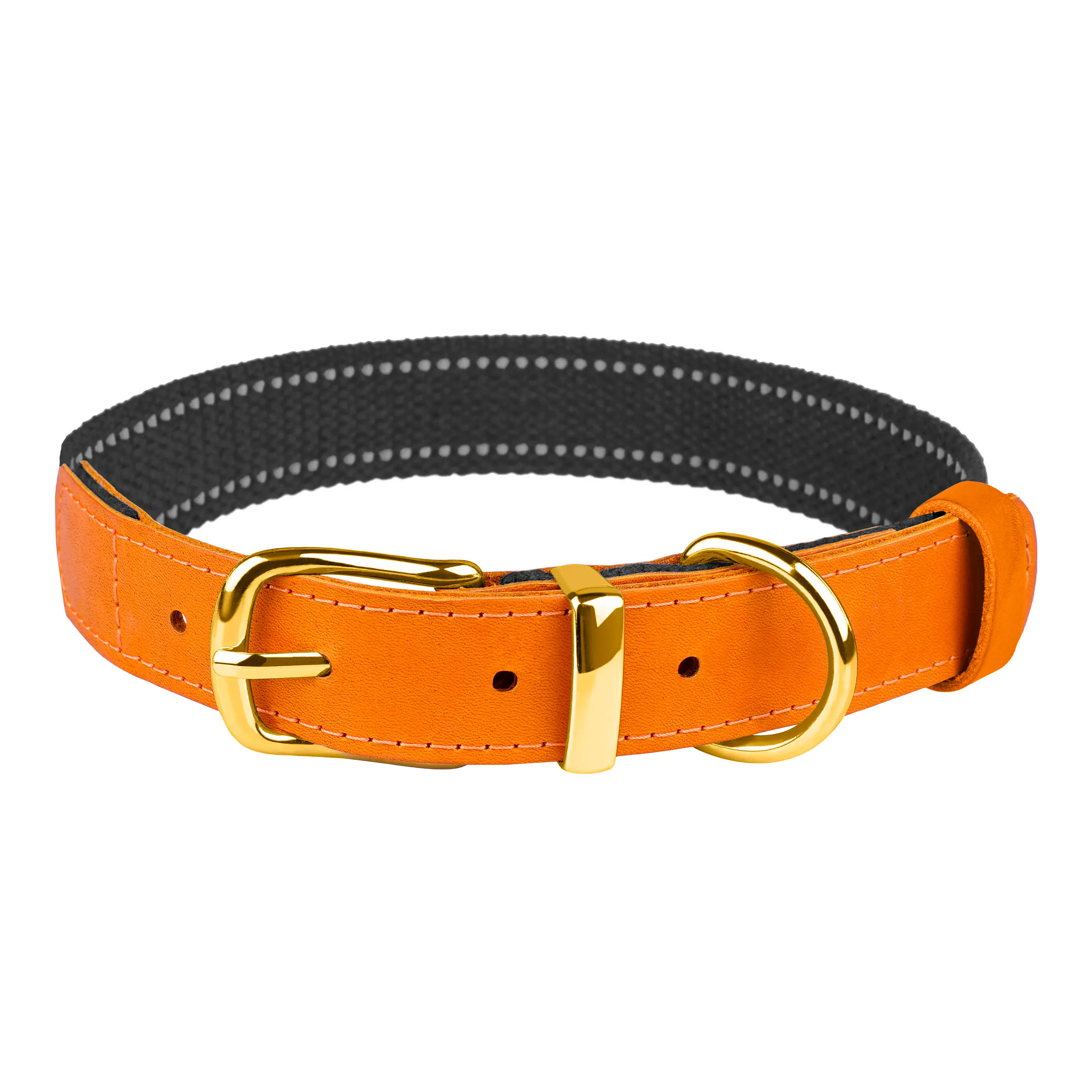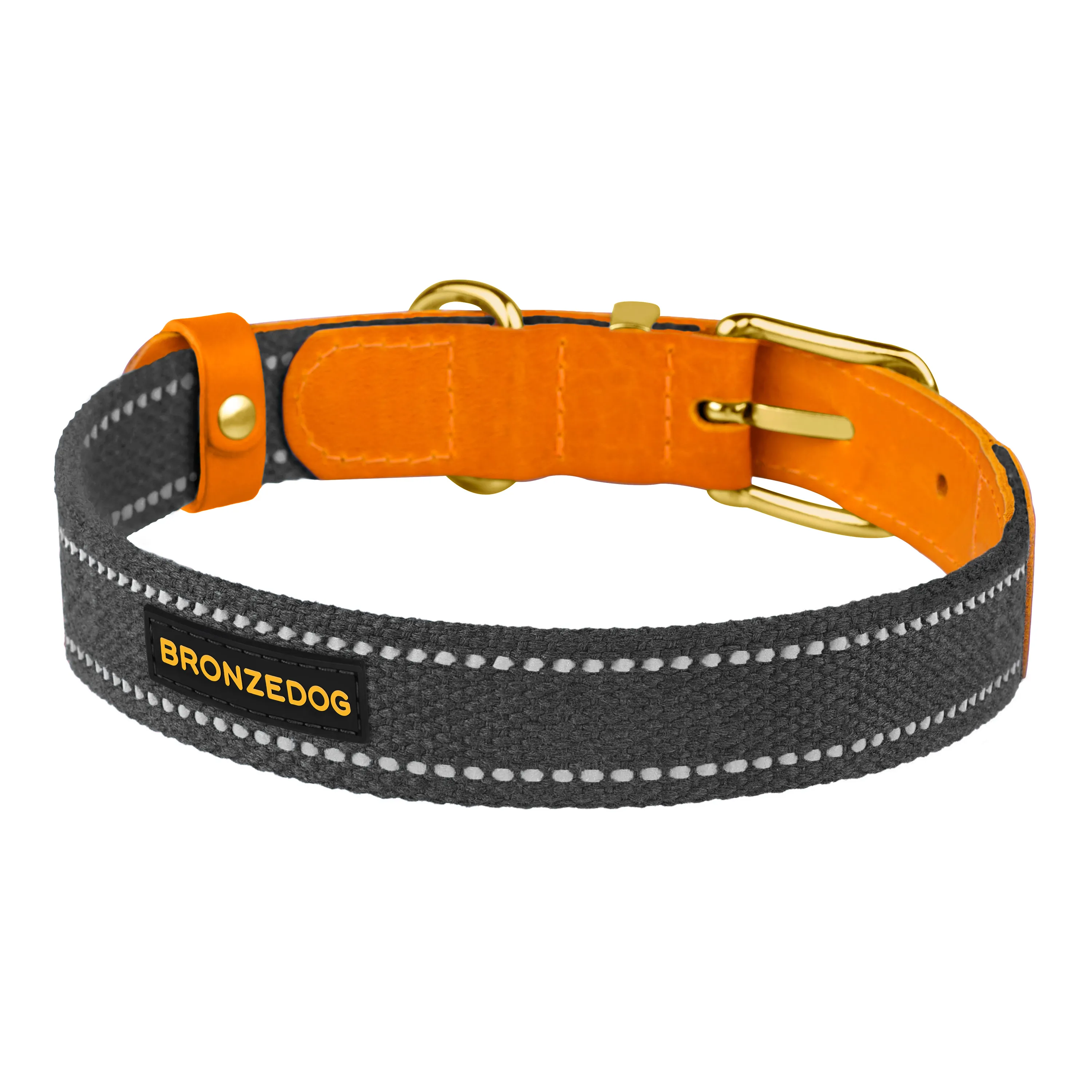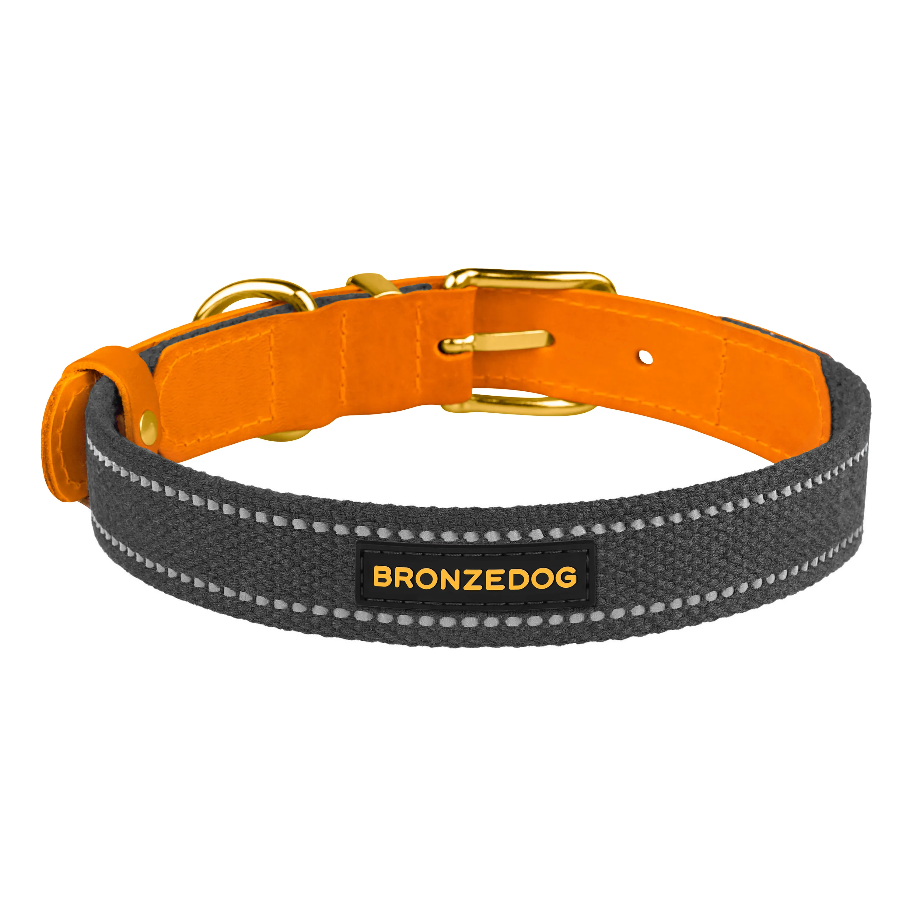 Barksi Нашийник для собак Брезент + Шкіра з металевою пряжкою рудий з графітовим, розмір M - 1