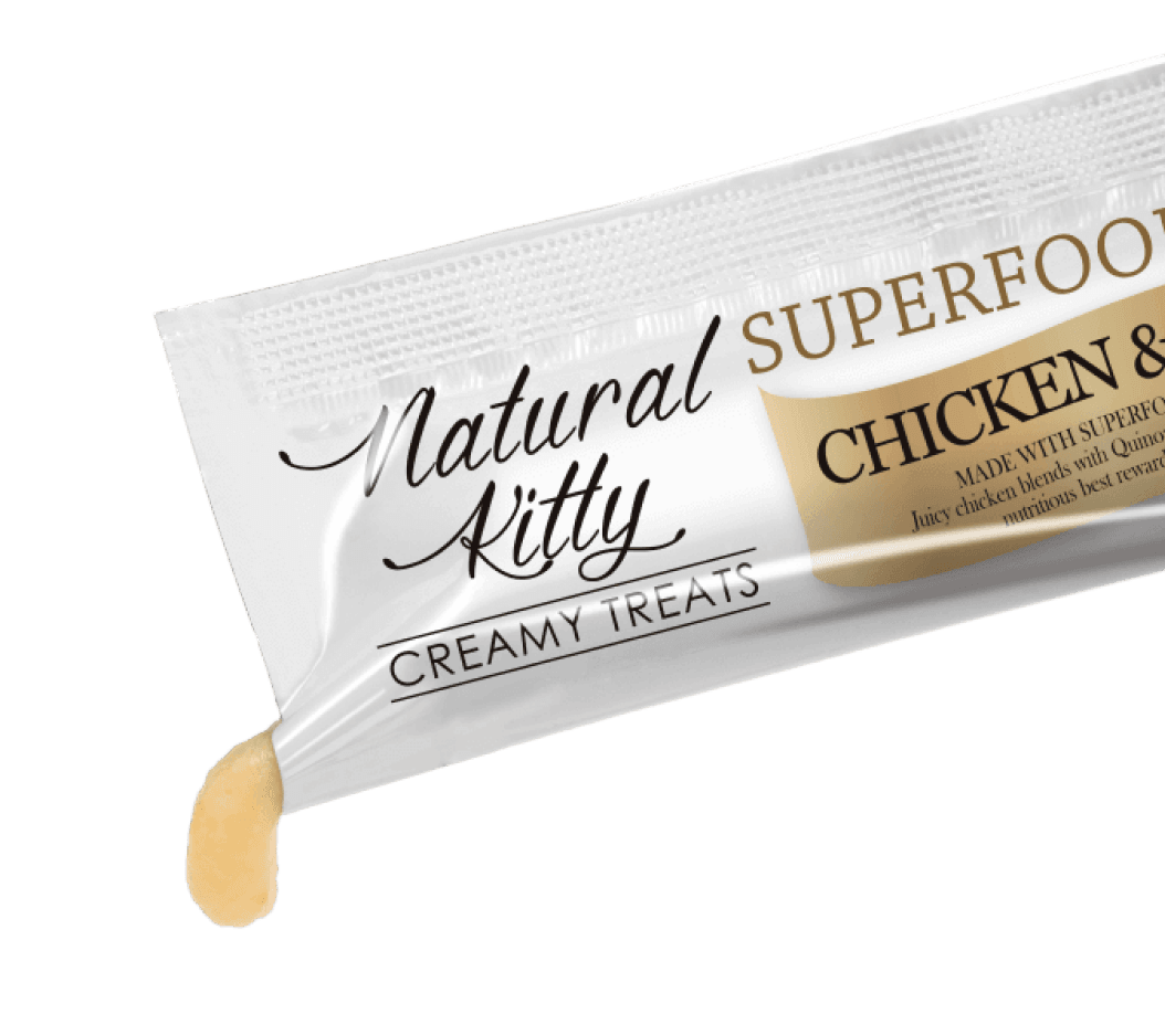 Кремові ласощі Natural Kitty Creamy Treats з куркою та кіноа мають насичений смак і вершкову консистенцію. Це не лише улюблене частування для котів, а й корисний продукт, що містить натуральні компоненти та сприяє підтримці здоров’я улюбленця.