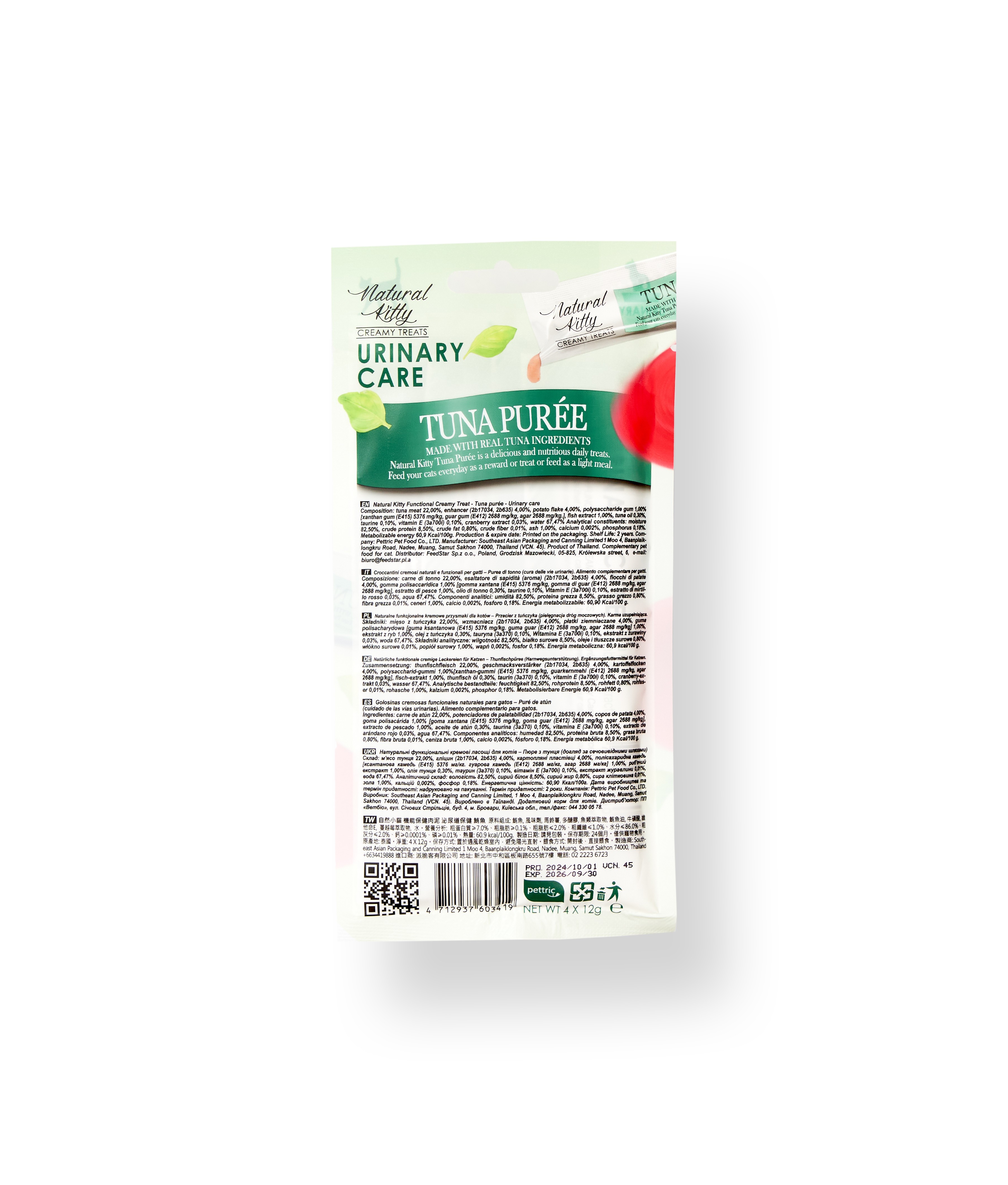 Кремові ласощі для котів з тунцем Natural Kitty Functional Creamy Treat Urinary Care – мають ніжну текстуру пюре, незрівнянний смак і доповнені необхідними корисними речовинами з урахуванням особливих потреб улюбленця.