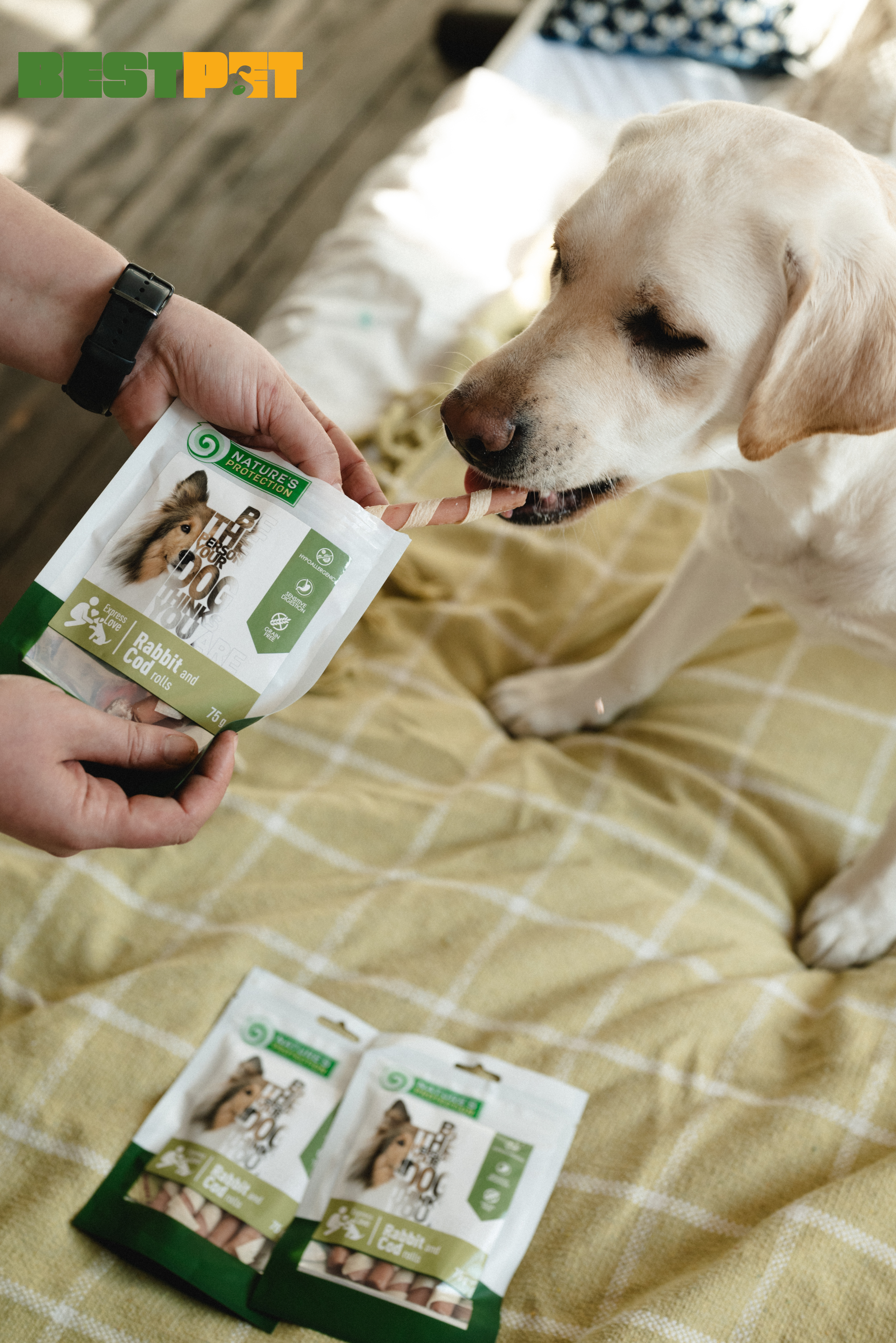 Це високоякісні, натуральні, унікальні смаки та різні види ласощів, розроблені з урахуванням потреб різних домашніх улюбленців. Ці продукти не містять штучних барвників та підсилювачів смаку. До складу входить високоякісна кролятина. Це низькокалорійне м'ясо. Тріска – гіпоалергенна, нежирна риба, джерело Омега-3 і Омега-6 жирних кислот, джерело вітамінів А і D.